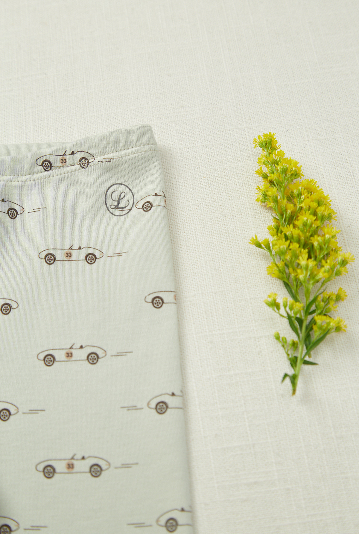 Panalon estampado de algodon Pima, con elastico en cintura y puños altos.
