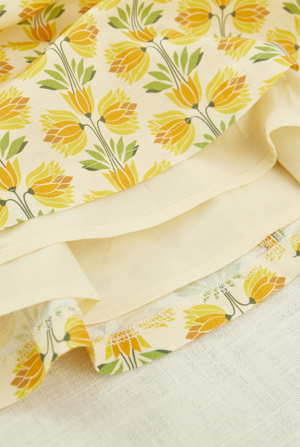 80% Lino 20% Modal. Forrería: 100% Algodón. Lavar a mano con agua fría. No usar blanqueadores. No retorcer ni centrifugar. Secar sobre superficie plana. Plancha tibia. No apto limpieza en seco.