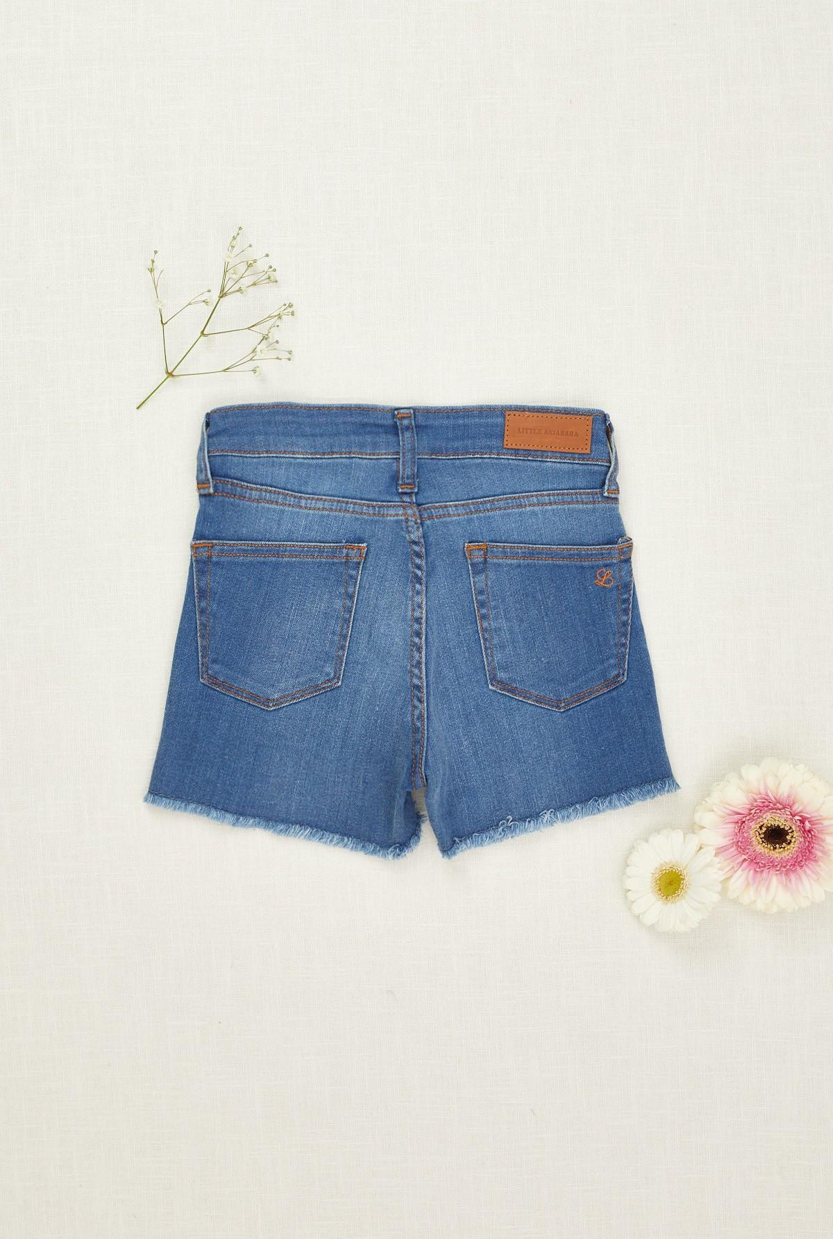 Short denim corto con dobladillo fijo en terminación de piernas.