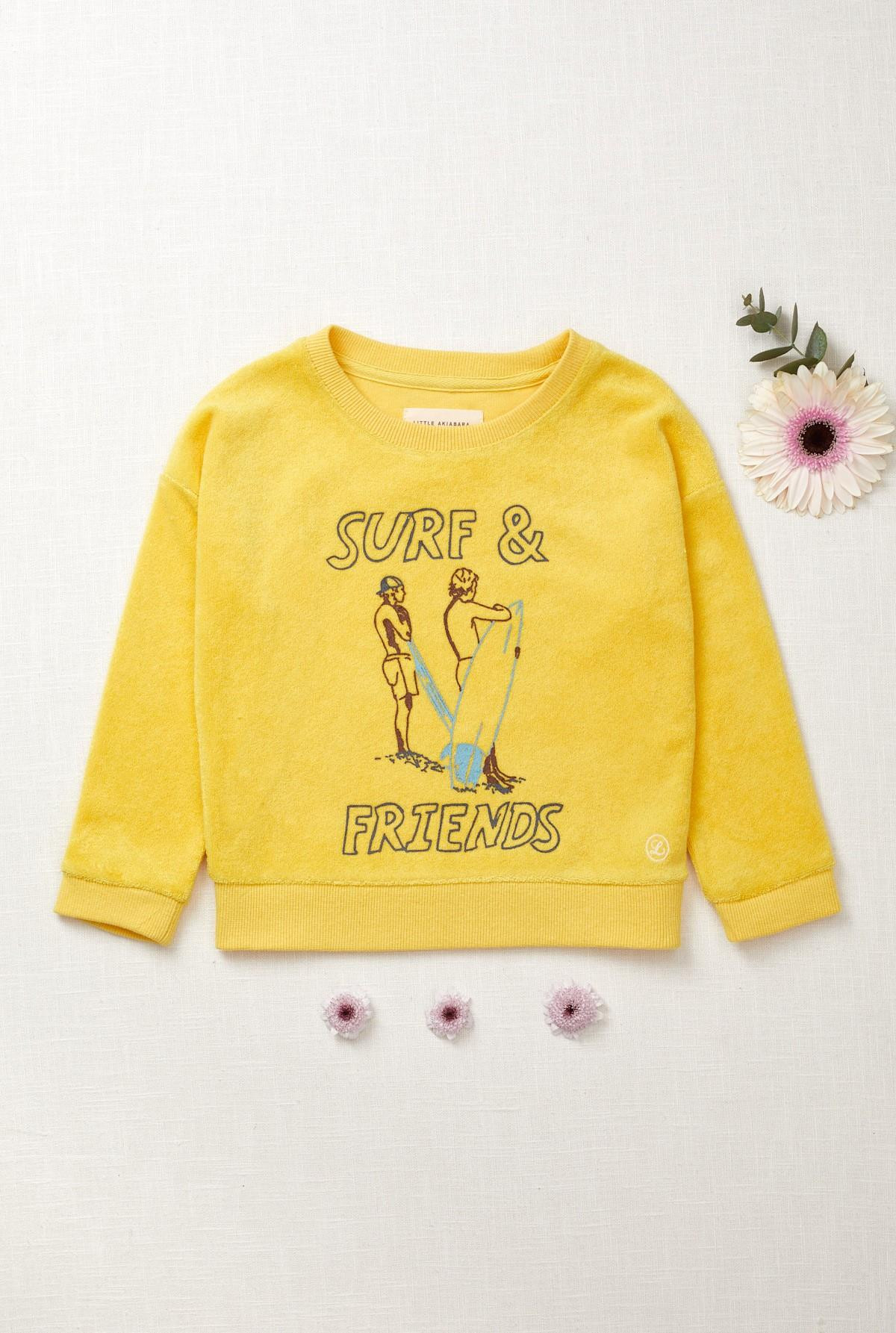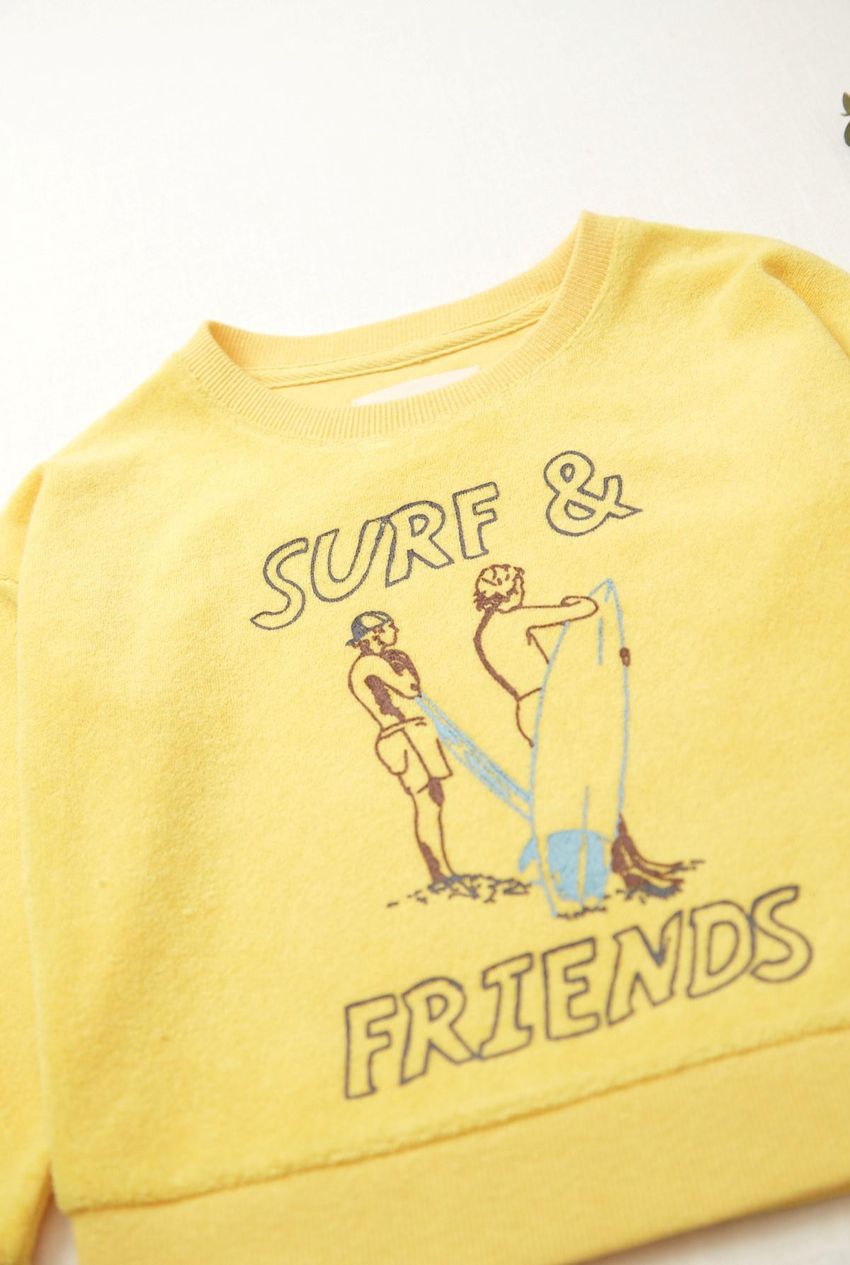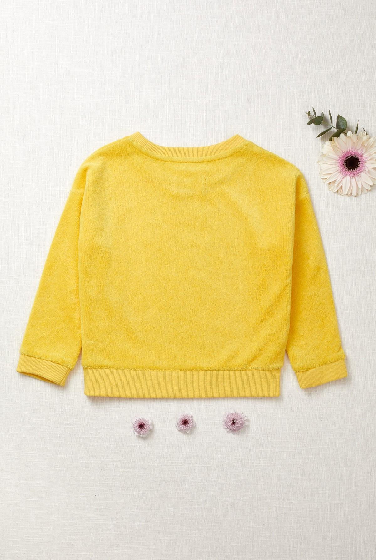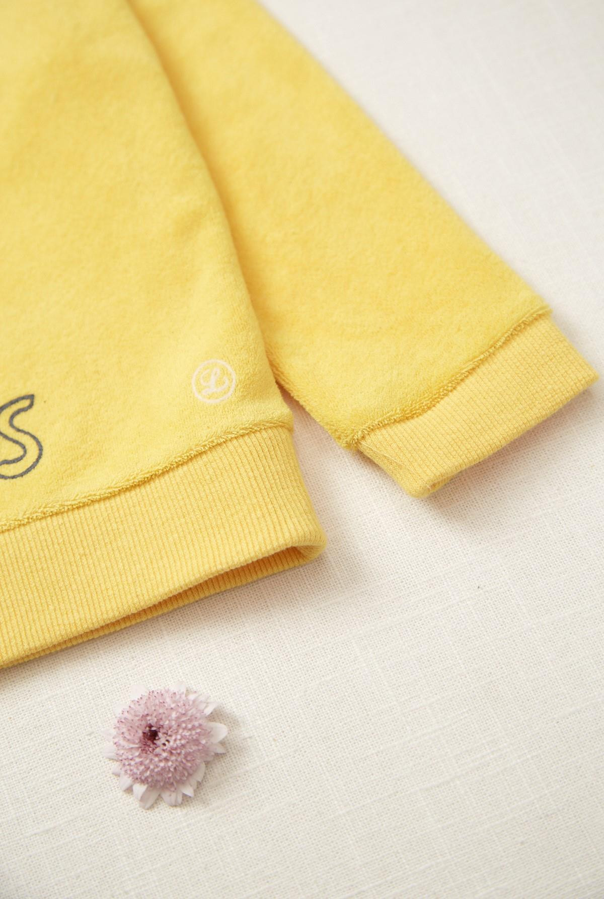 Buzo en towel, cuello redondo, manga larga con puños dobles. Estampa en delantero.