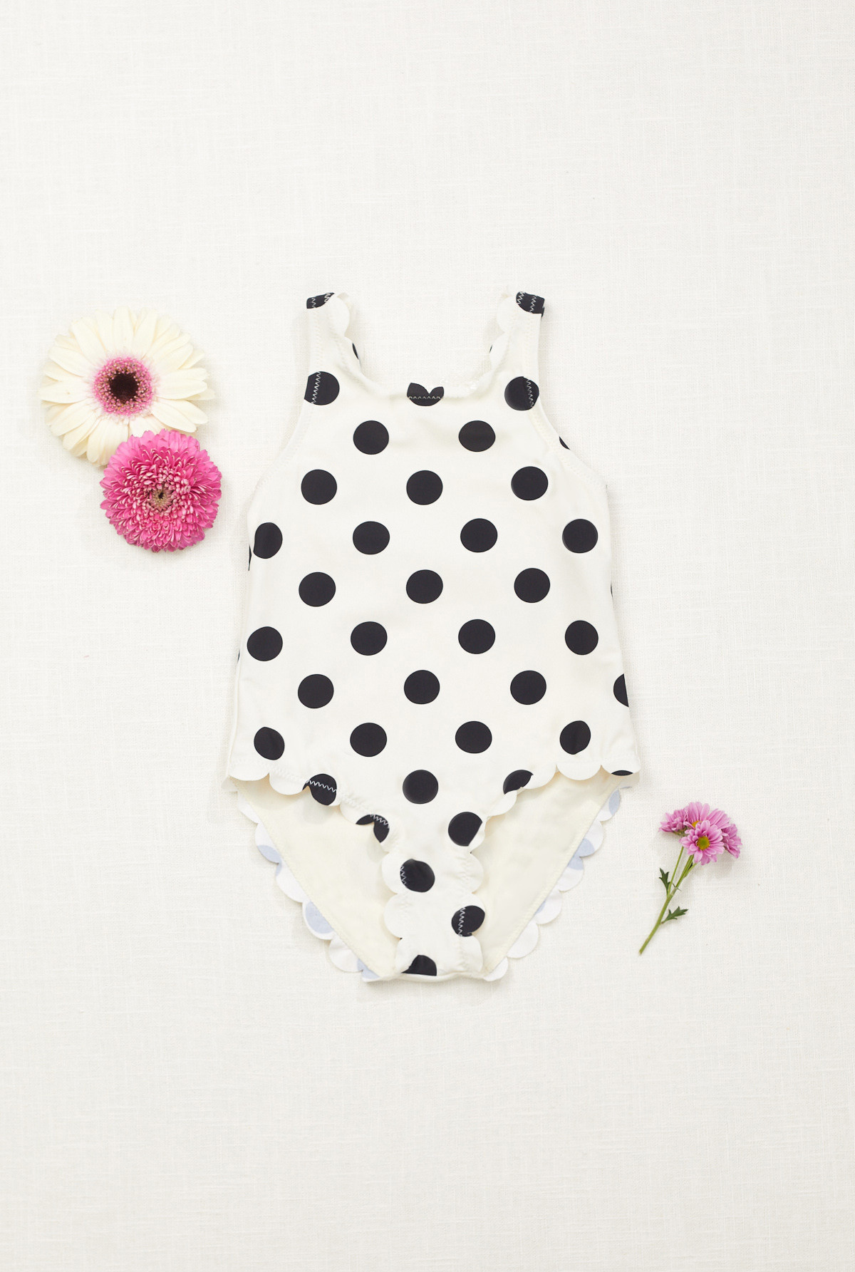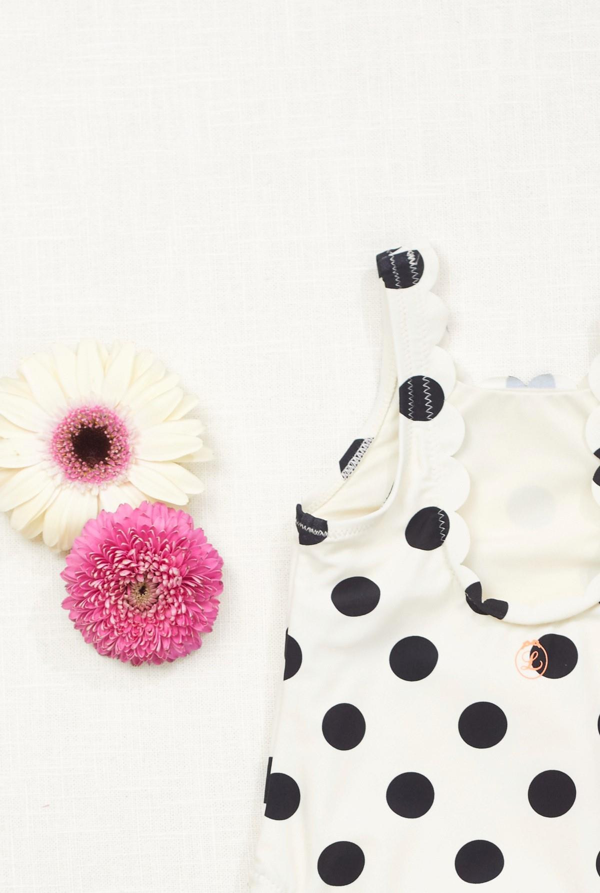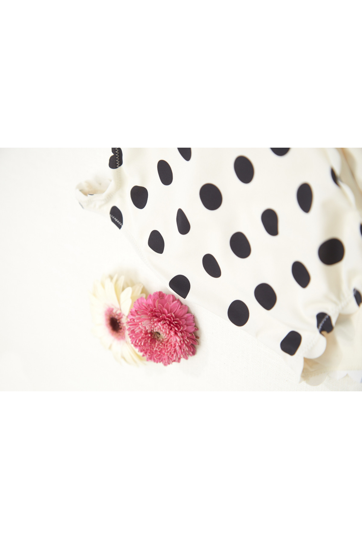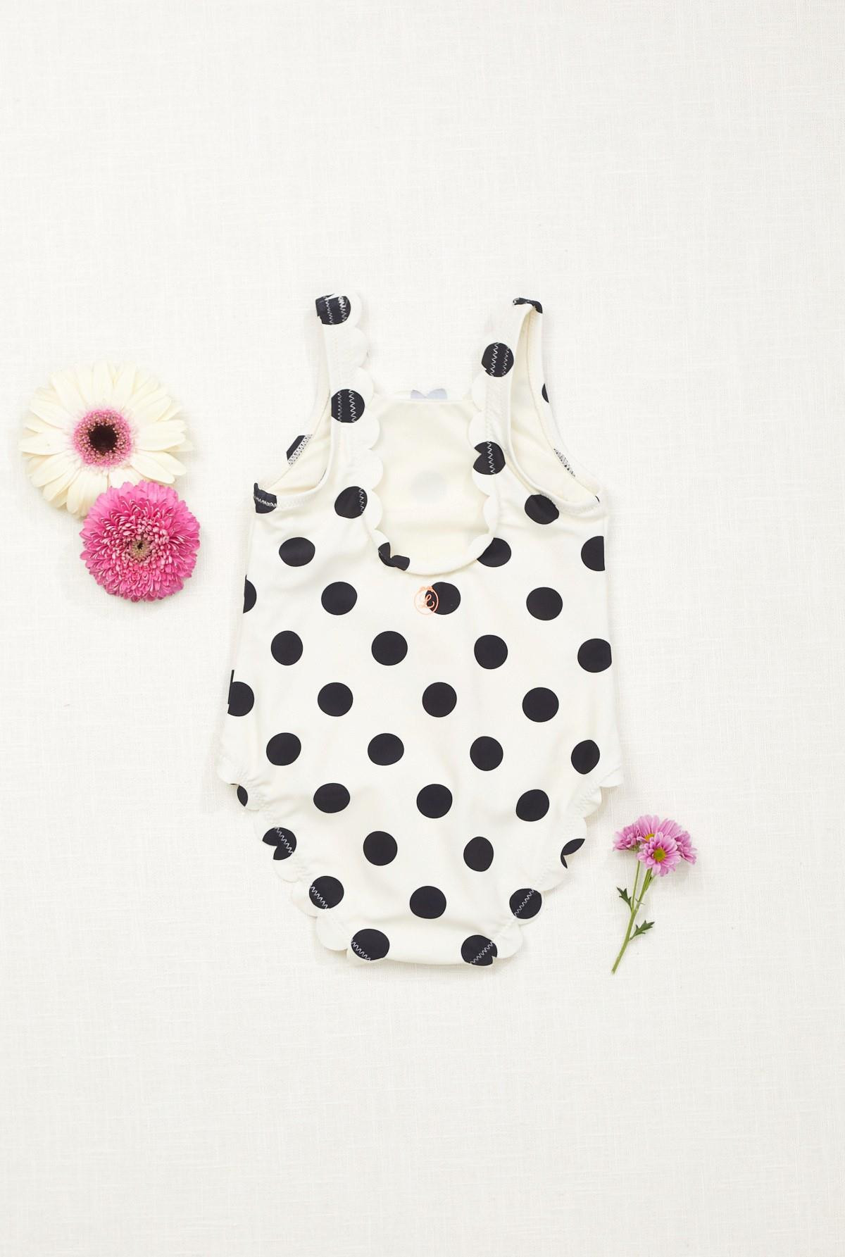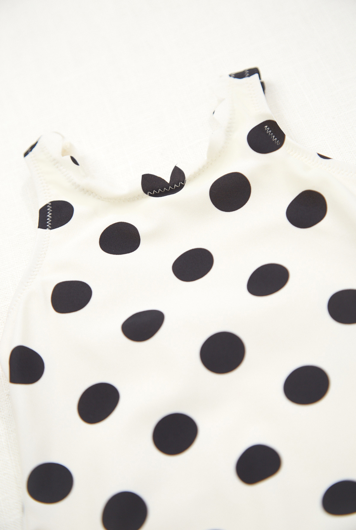 Enteriza forrada de nylon elastizado. Detalle de onditas en eterminaciones. Estampado con lunares.