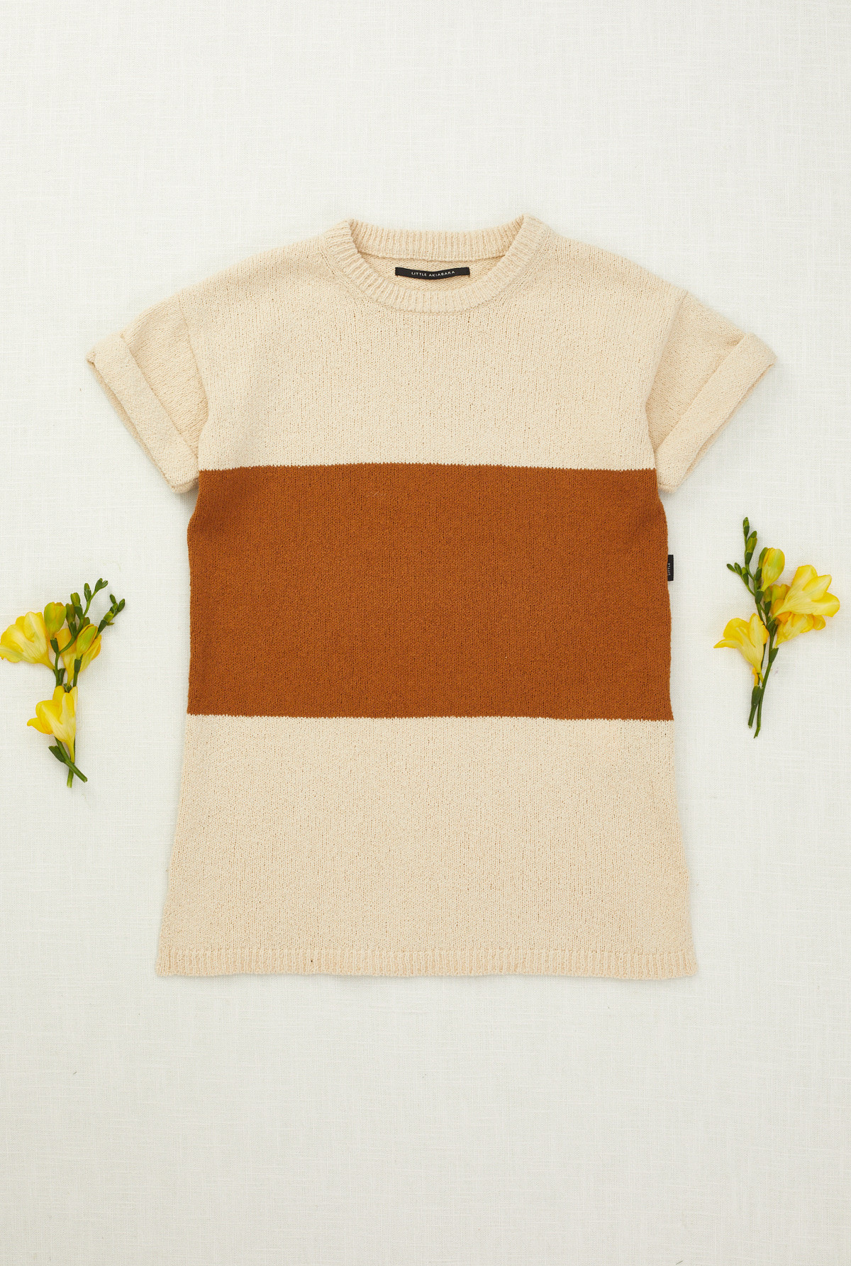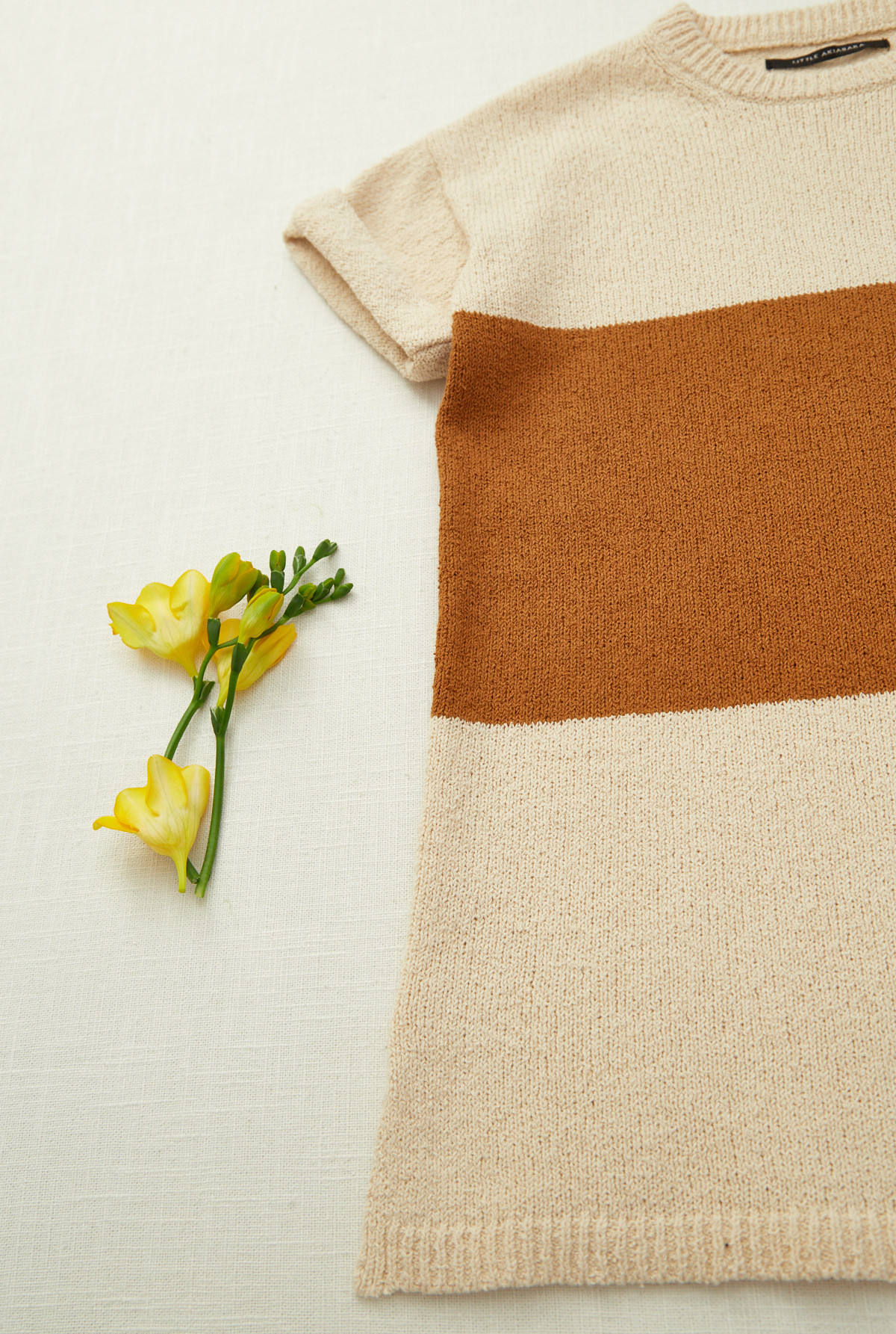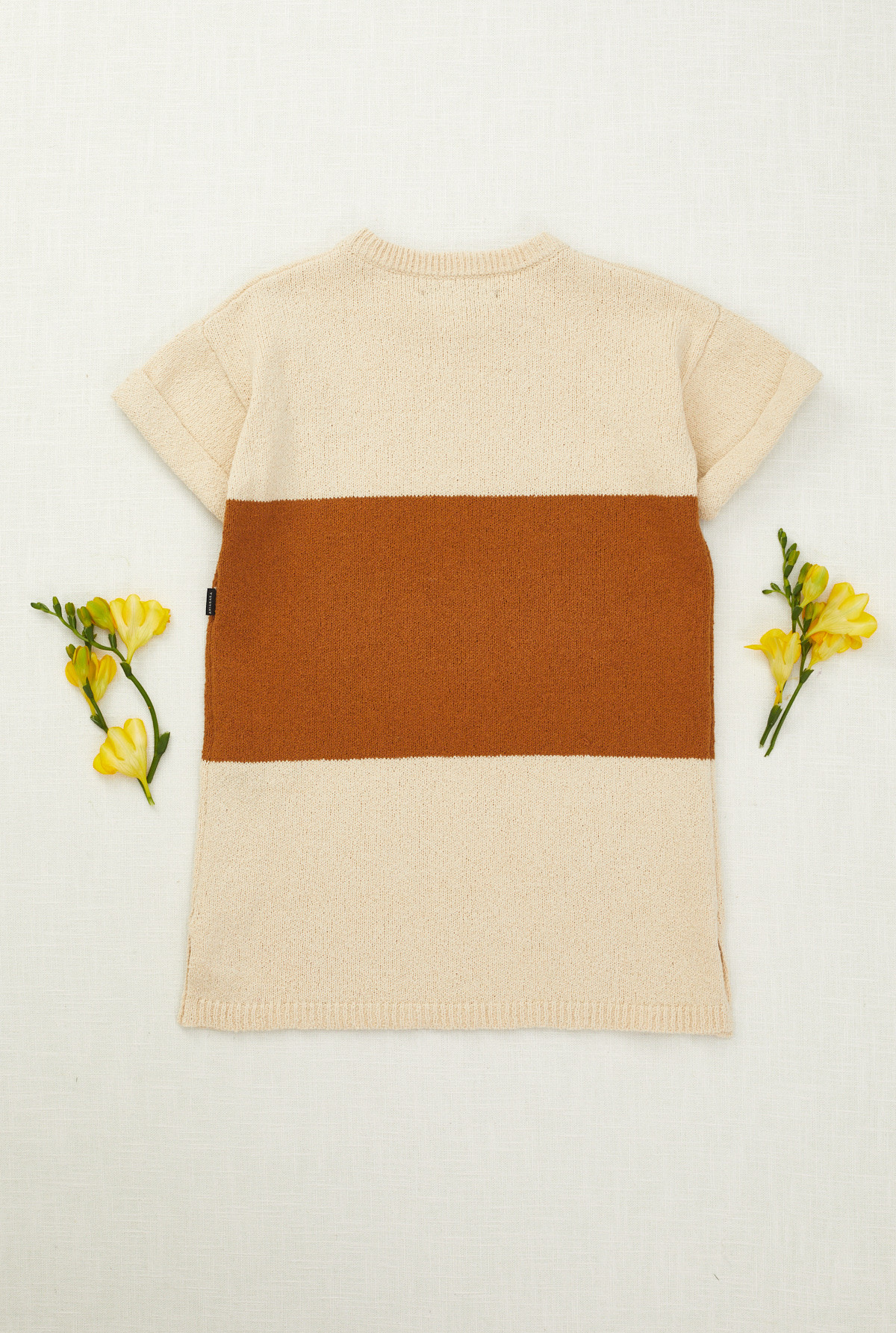 Vestido con cuello redondo y manga corta . Rayado a 2 colores. Tejido con textura en calidad de algodón pima. Calce amplio.