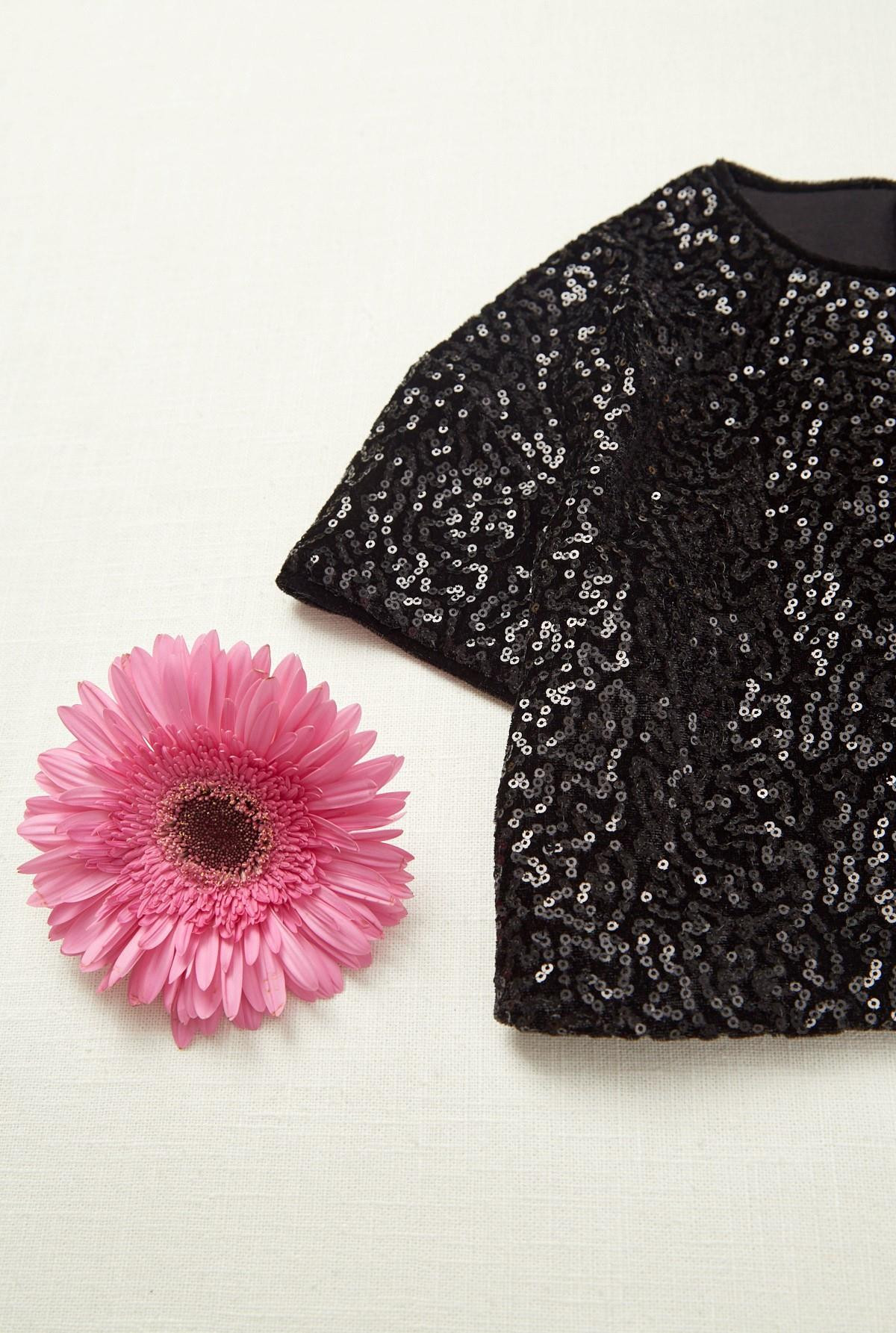 Blusa de lentejuelas. Con cierre en espalda para facil acceso. Forrado en su totalidad.