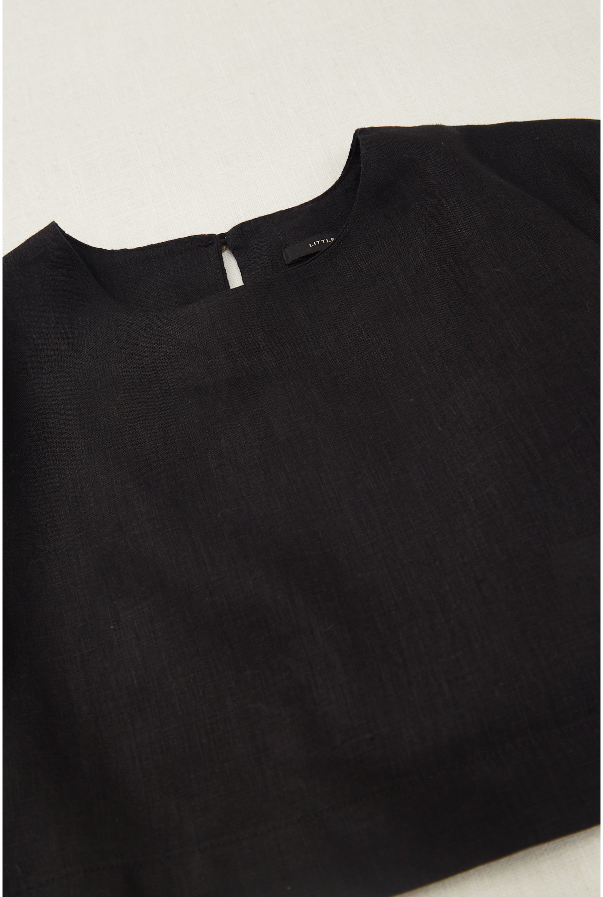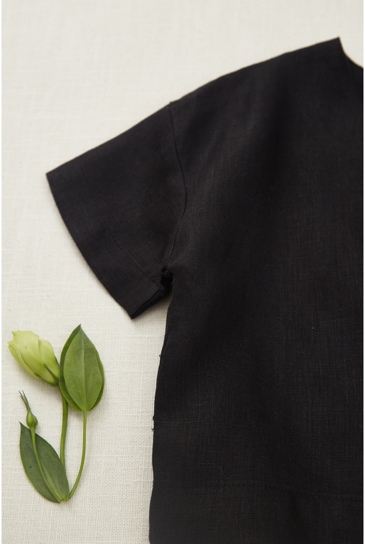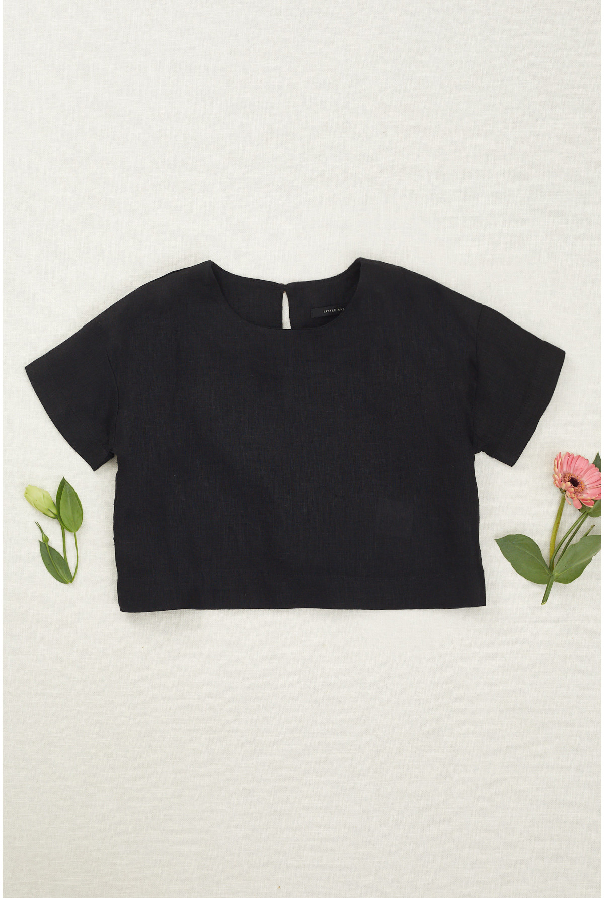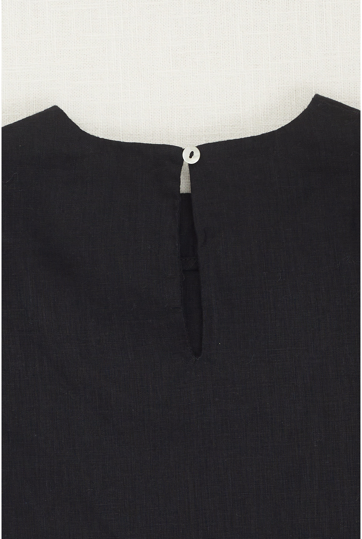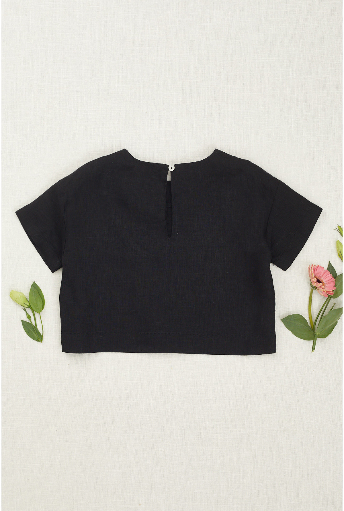 Blusa cuello redondo con manga corta, slueta amplia. Espalda con tajo tipo gota.