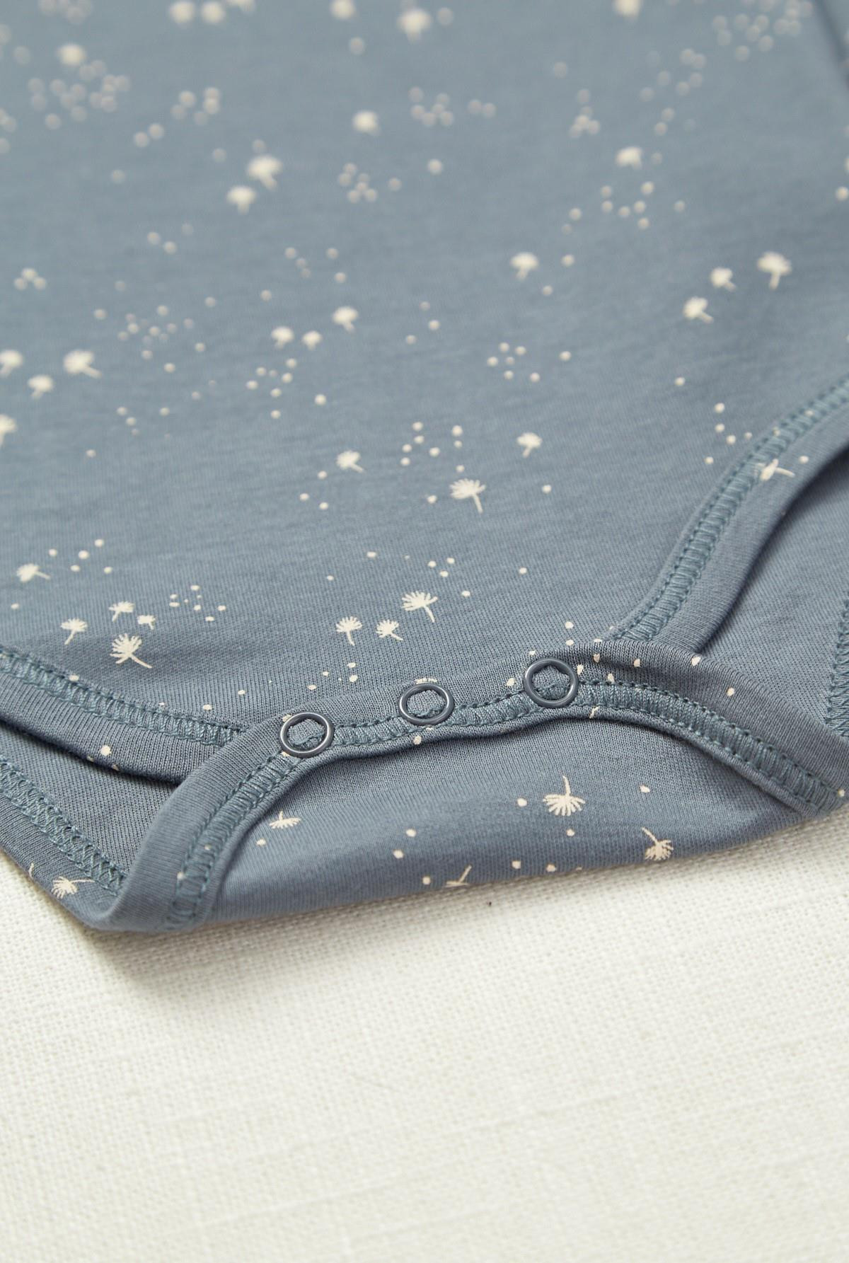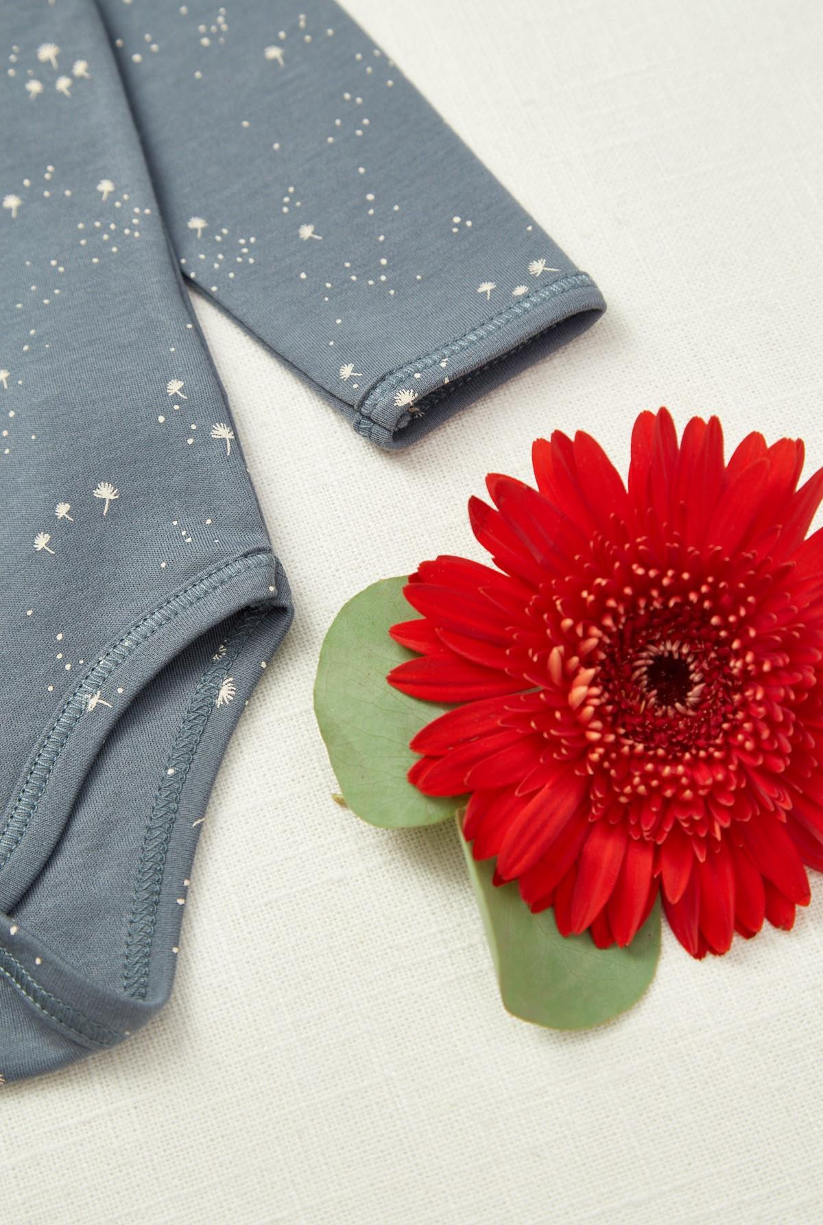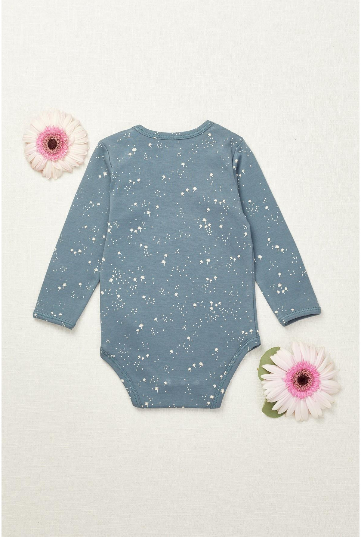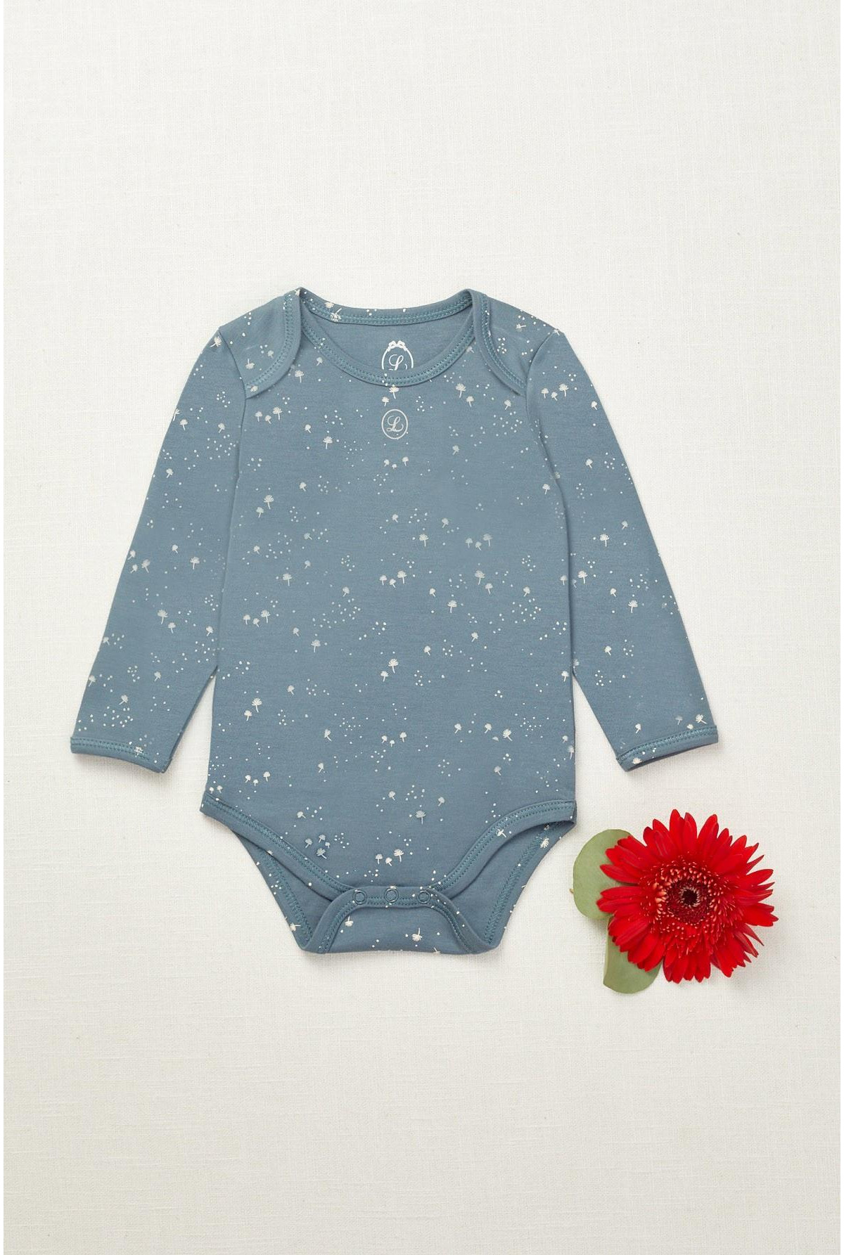 Body de algodon Pima manga larga, estampado . Escote estilo americano, Abertura en entrepiernas con snaps a tono para un facil acceso.