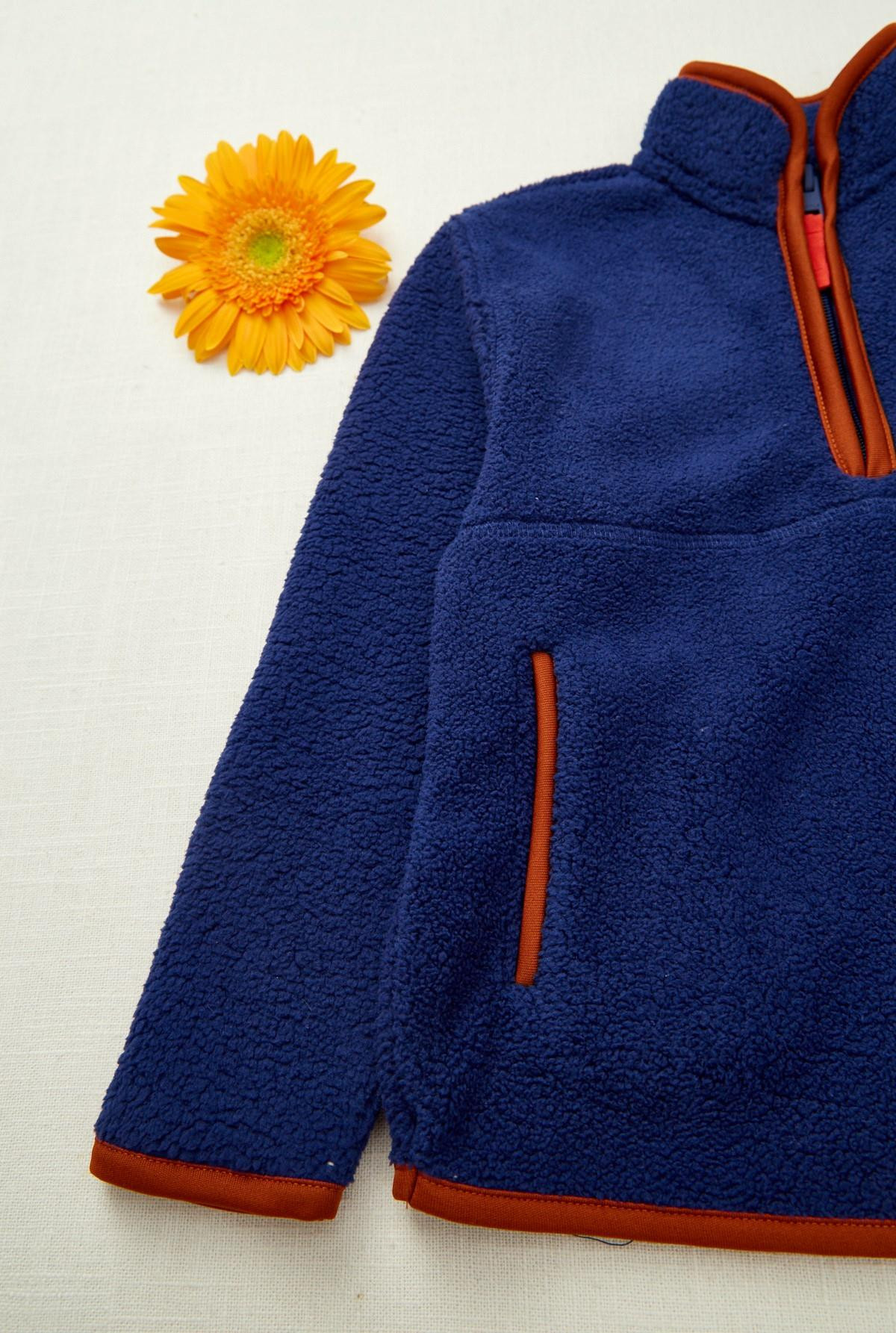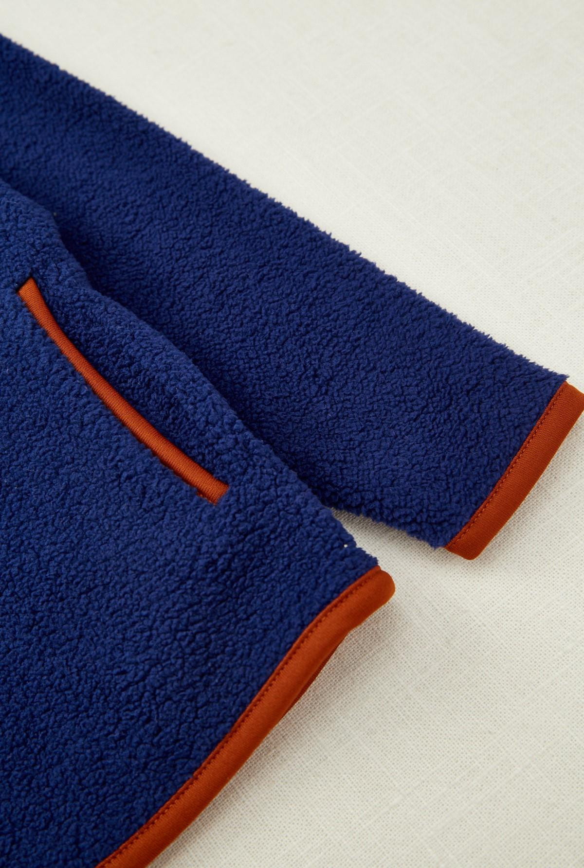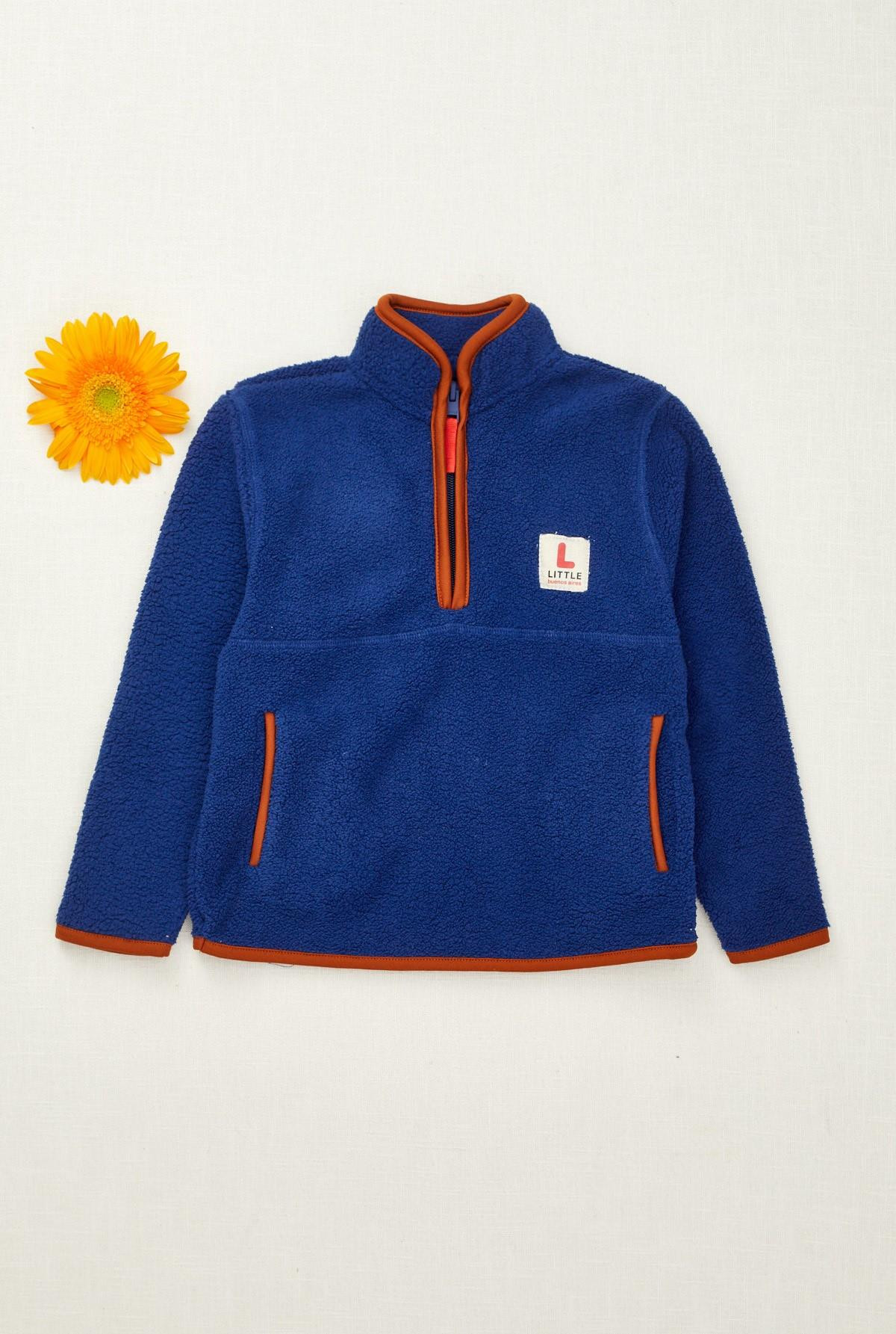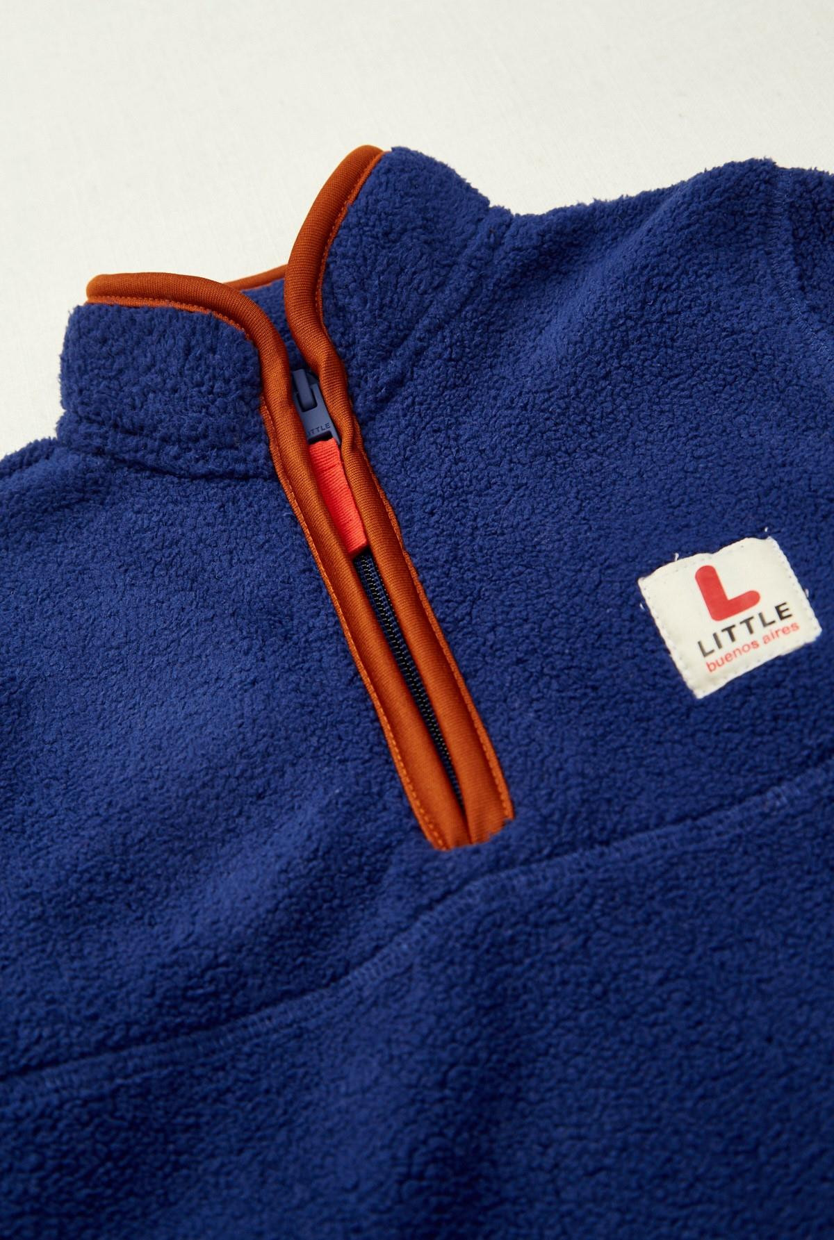 Buzo polar, cuello mock, manga larga con vivos en nailon a contratono. Cierre en delantero y bolsillos.