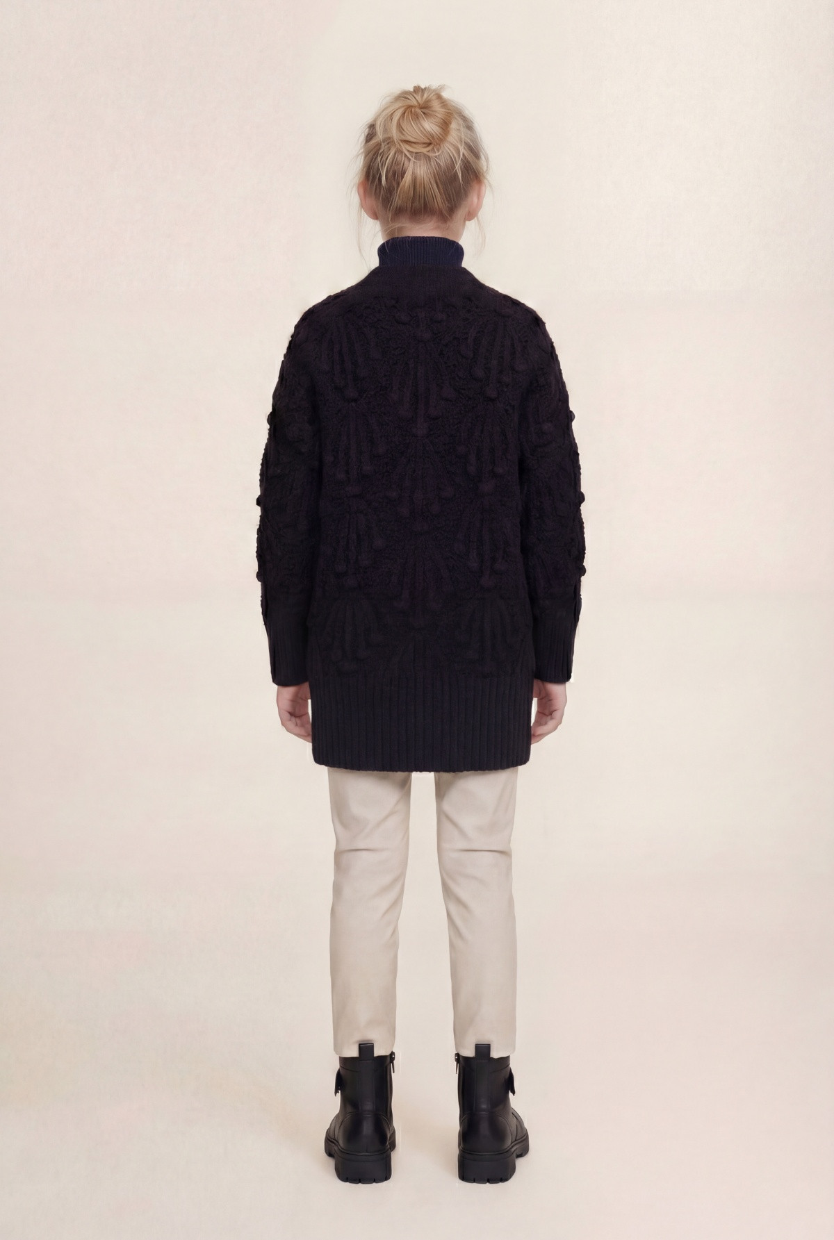 Cardigan cuello V, manga larga en tejido especial. Calce amplio.