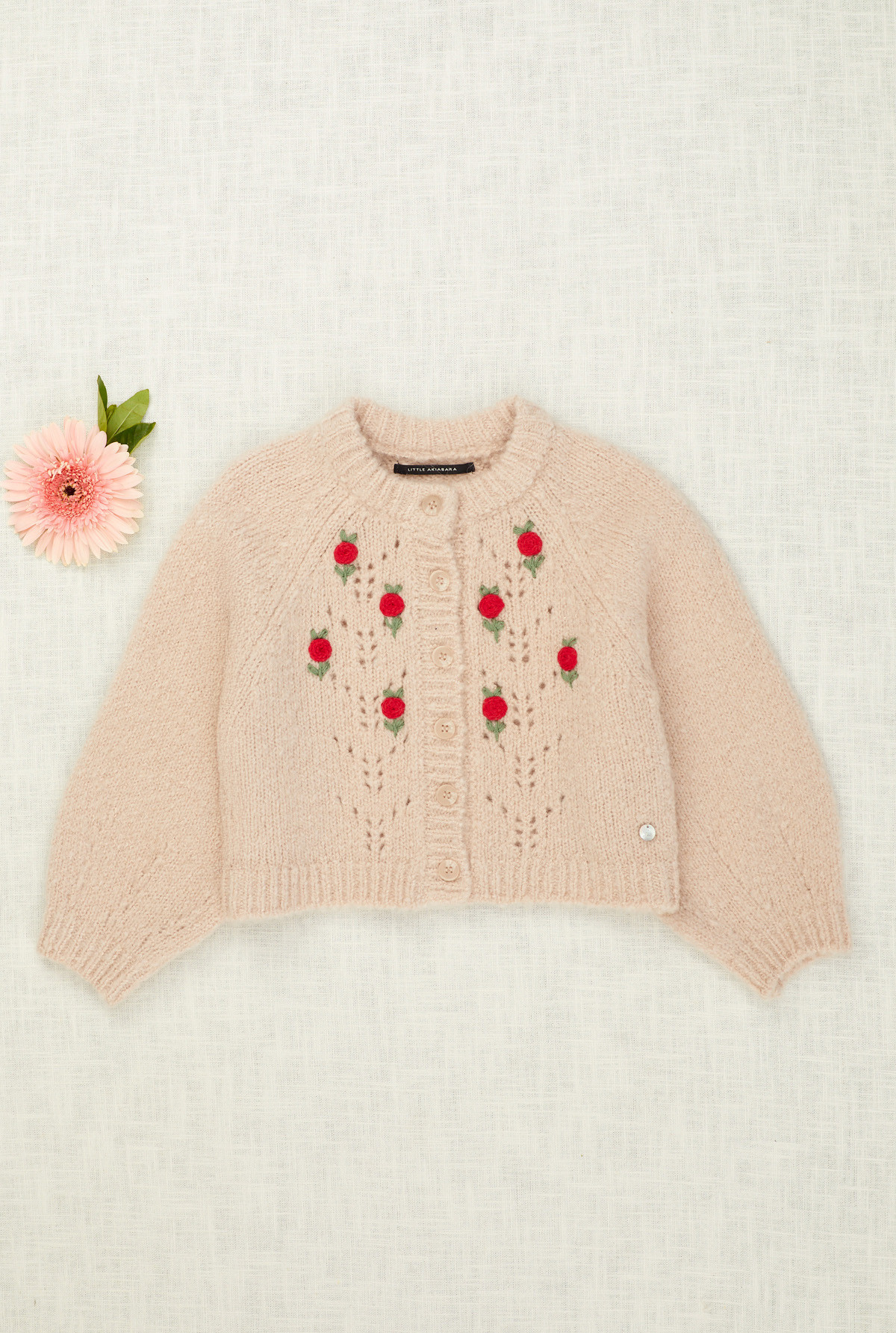 Cardigan manga larga con botones con pointless (en el frente (desagujado) y bordado en el frente