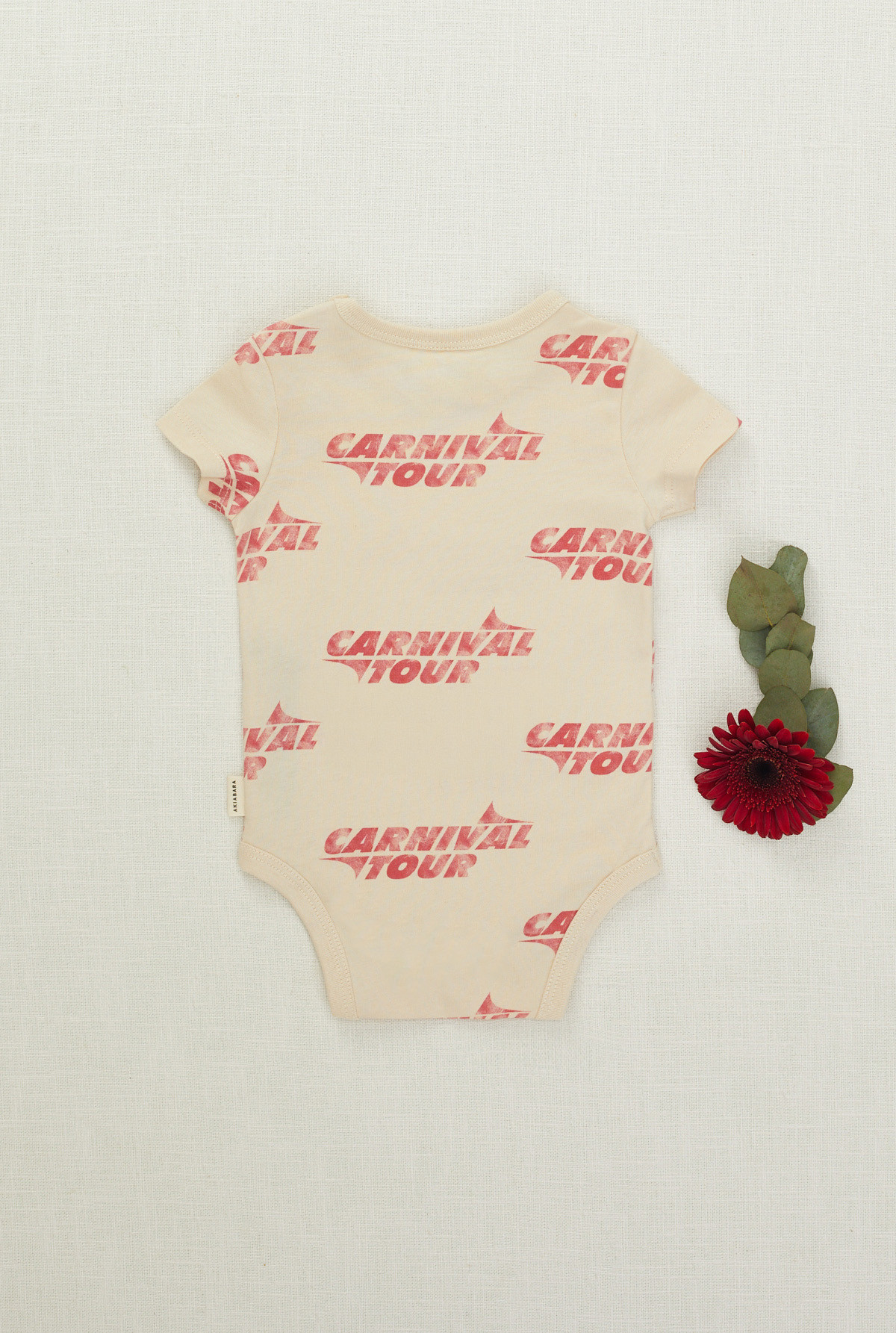 Body cuello redondo, manga corta en calidad suave y confortable, estampada. Apertura en tiro y hombros con snaps