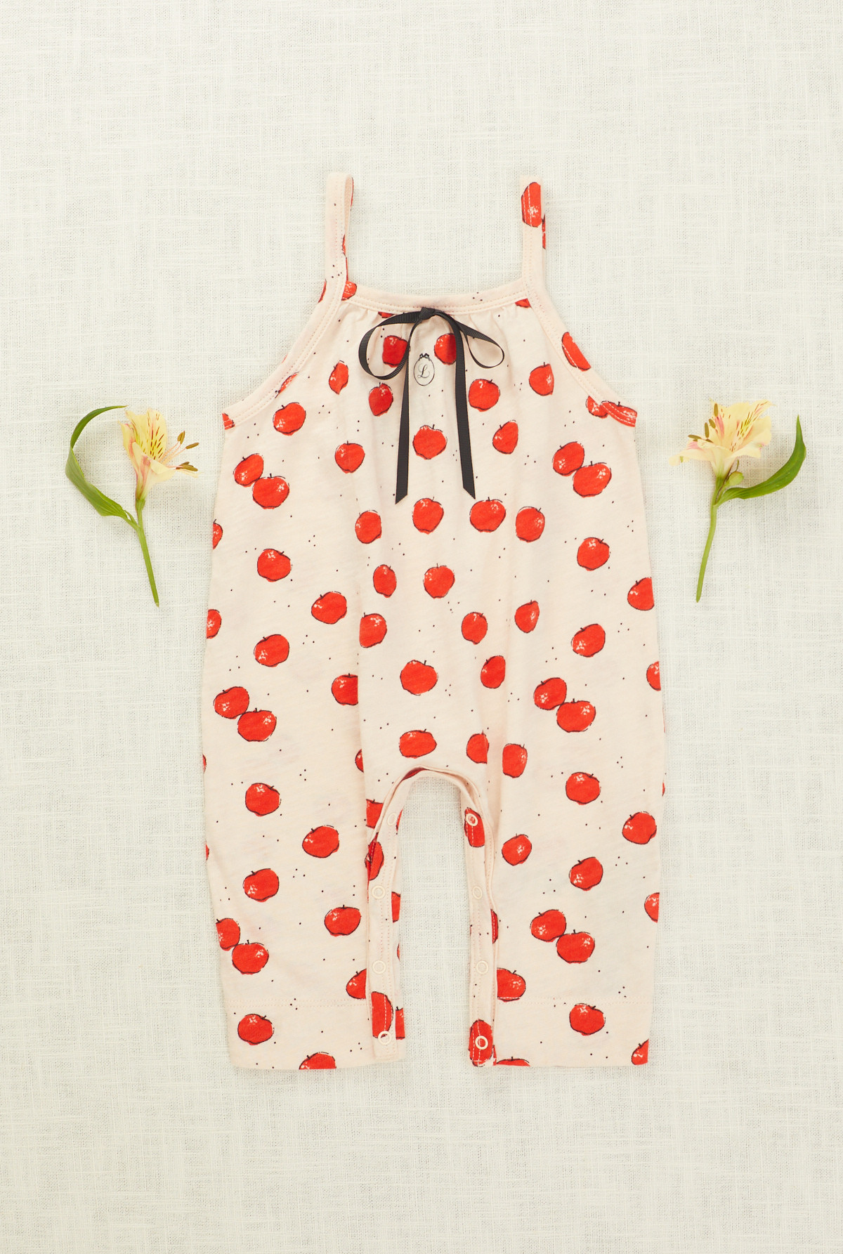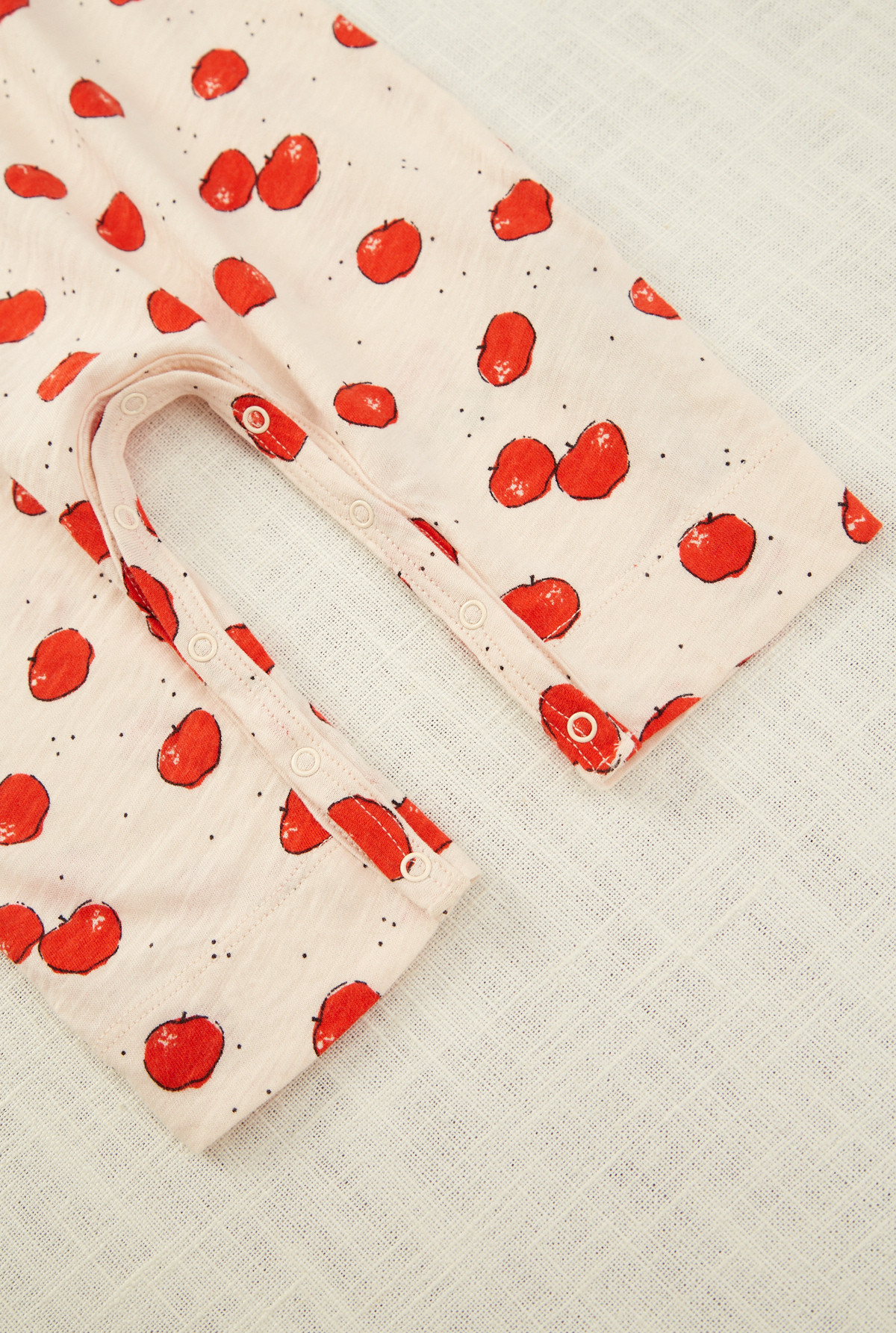 Enterito estampado, holgado con cuello semi cuadrado. Posee una cartera con snaps en entrepierna para acceder a la prenda y un detalle demoño decorativo en el centro delantero.