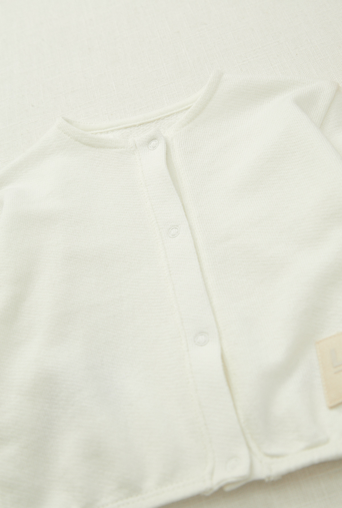 Cardigan cuello redondo manga larga, con puños y cintura elastizada. Cartera delantera con snaps a tono