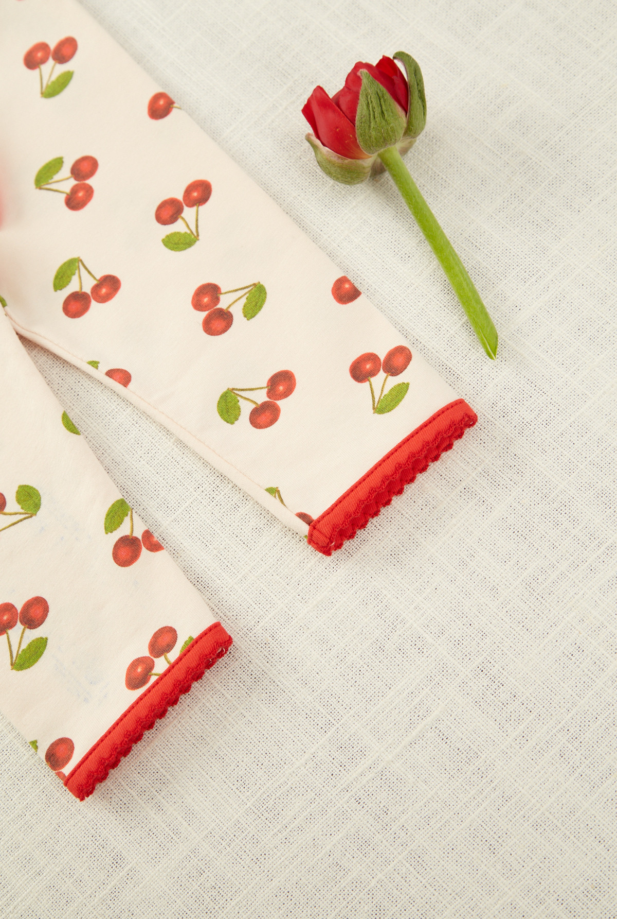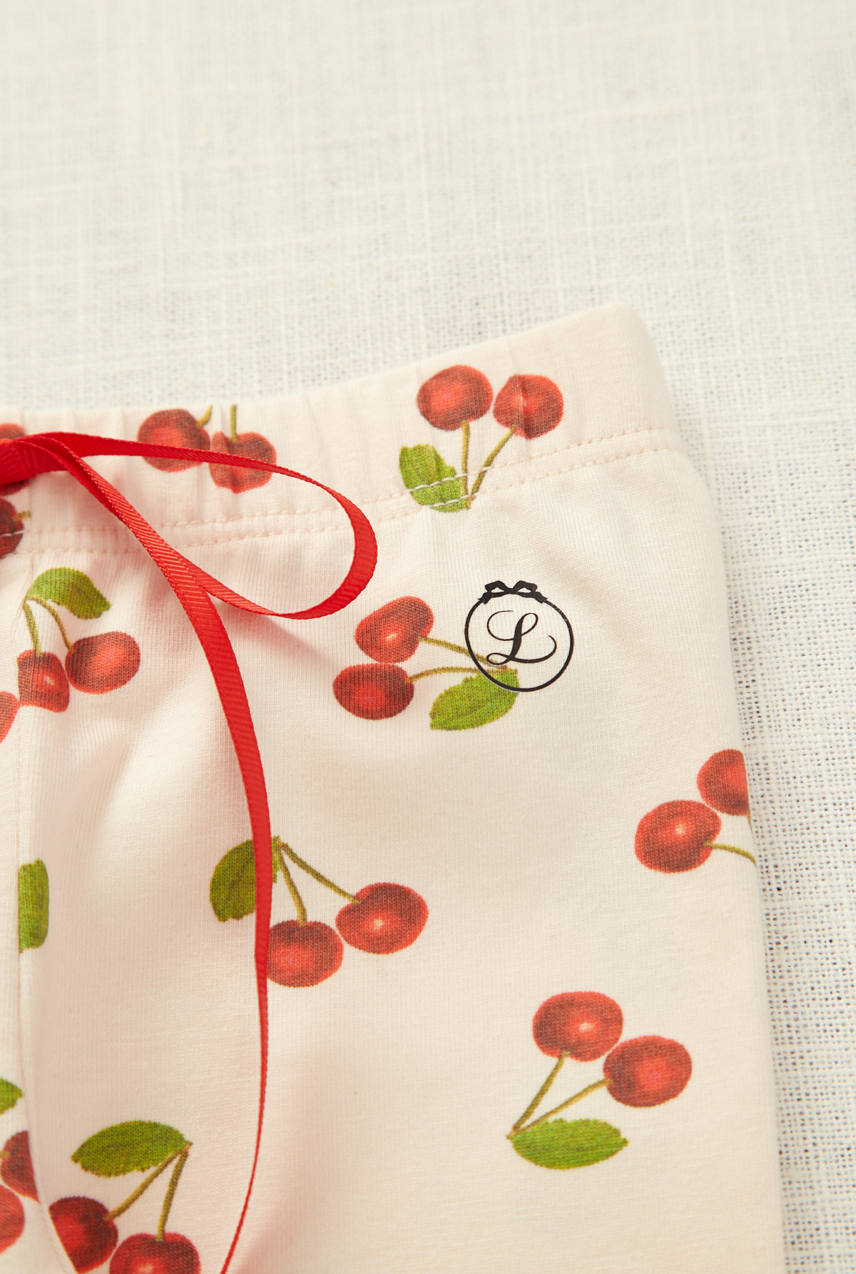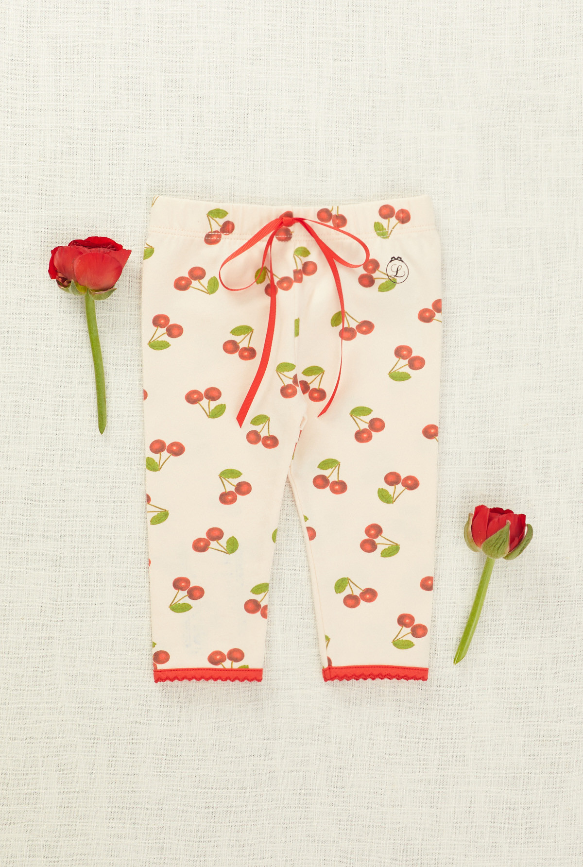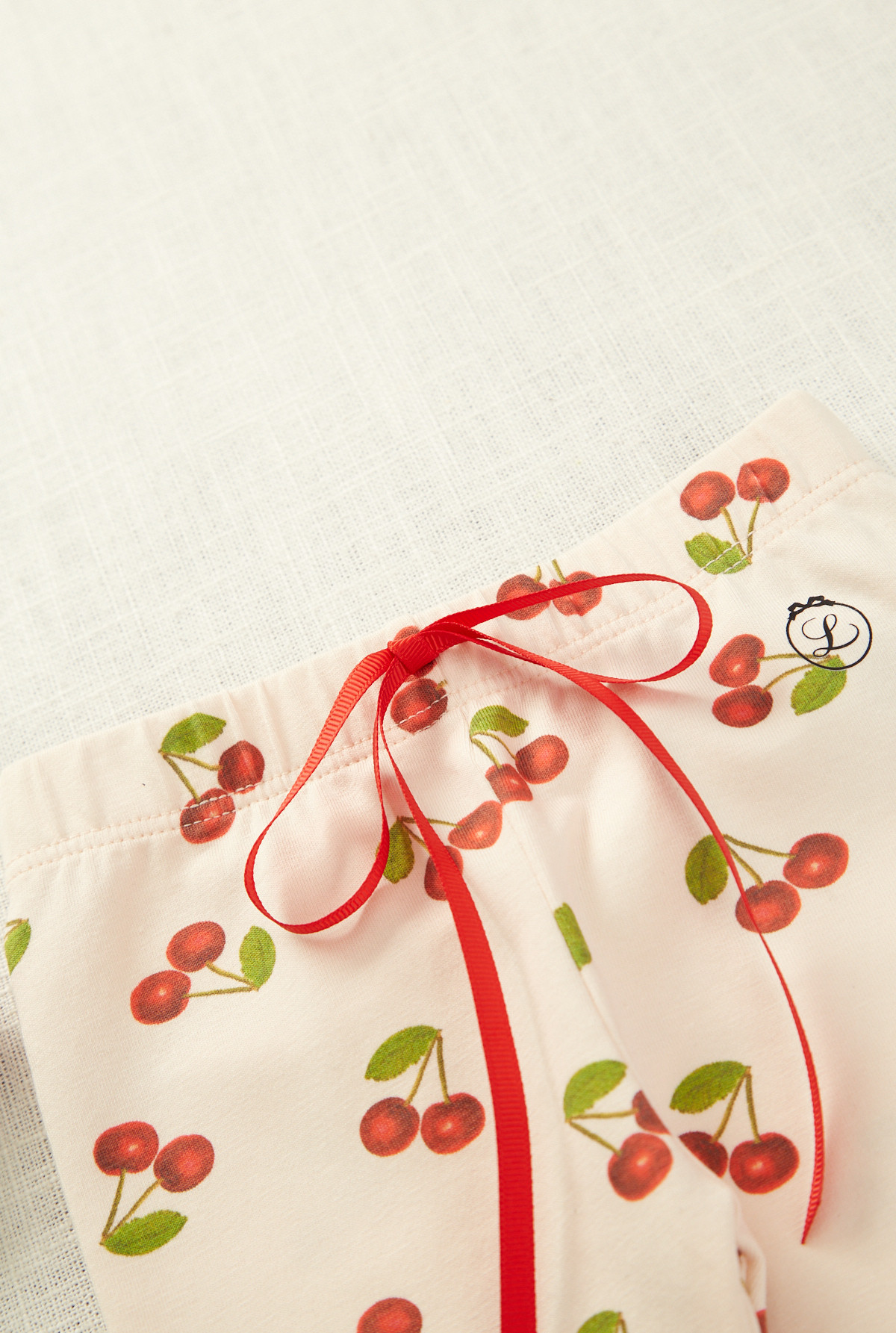 Calza estampada, cintura elastizada y detalle de moño decorativo en el centro delantero y en ambas piernas. La terminación del puño es picot. Ideal para el día.