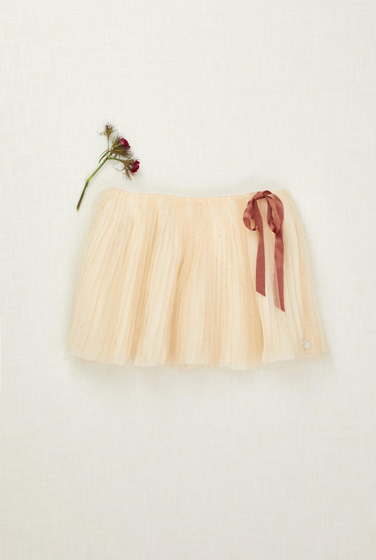 falda multicapas de tull con glitter y gasa plisada, largo arriba de la rodilla. Con forreria de algodón.