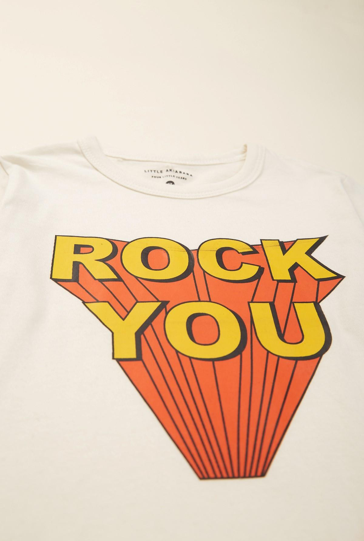Remera cuello redondo, mangas largas en suave jersey de algodón. Estampa rock you en transfer sobre delantero.