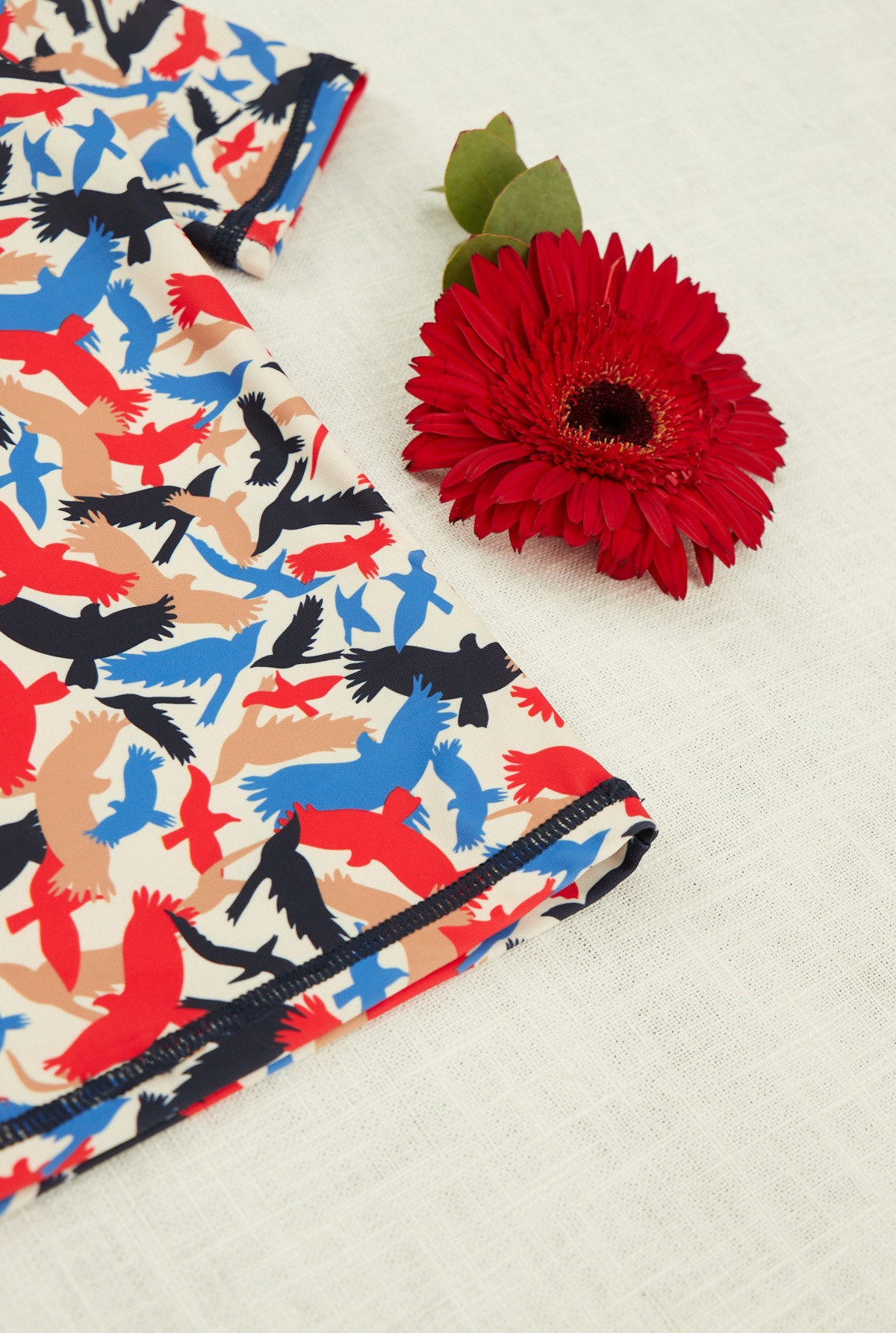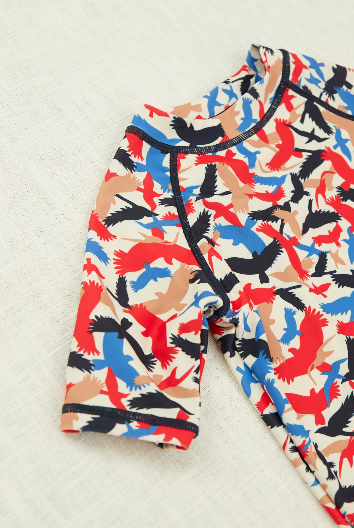 Remera de agua con filtro UV, manga raglan estampada con motivos de condores
