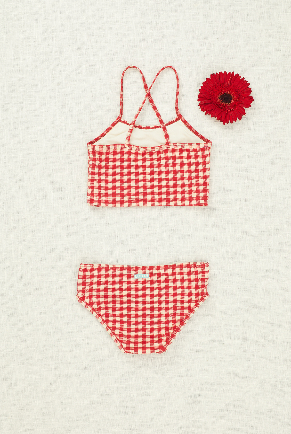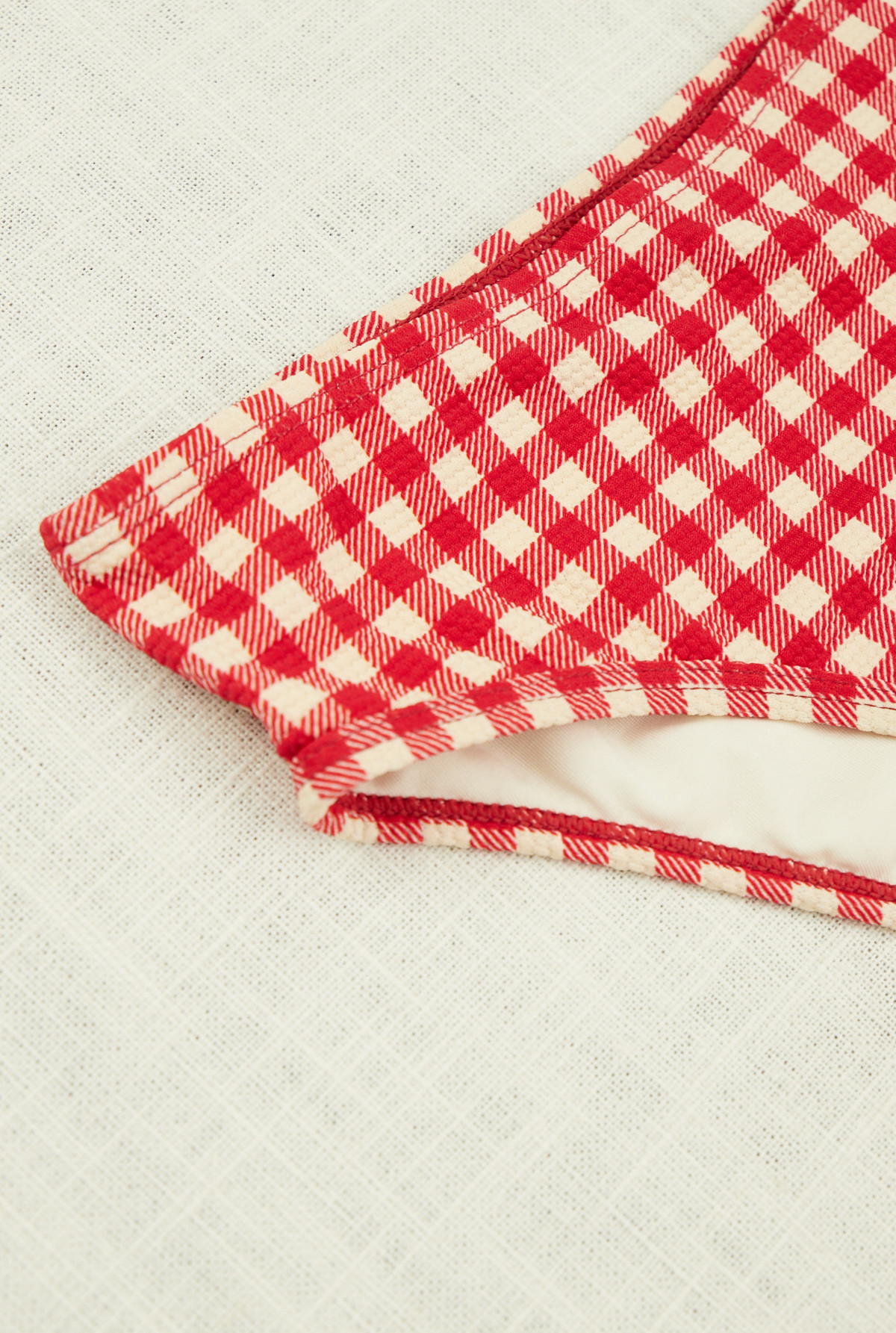 Bikini forrada, bretel cruzado. Estampado estampada con vichy,