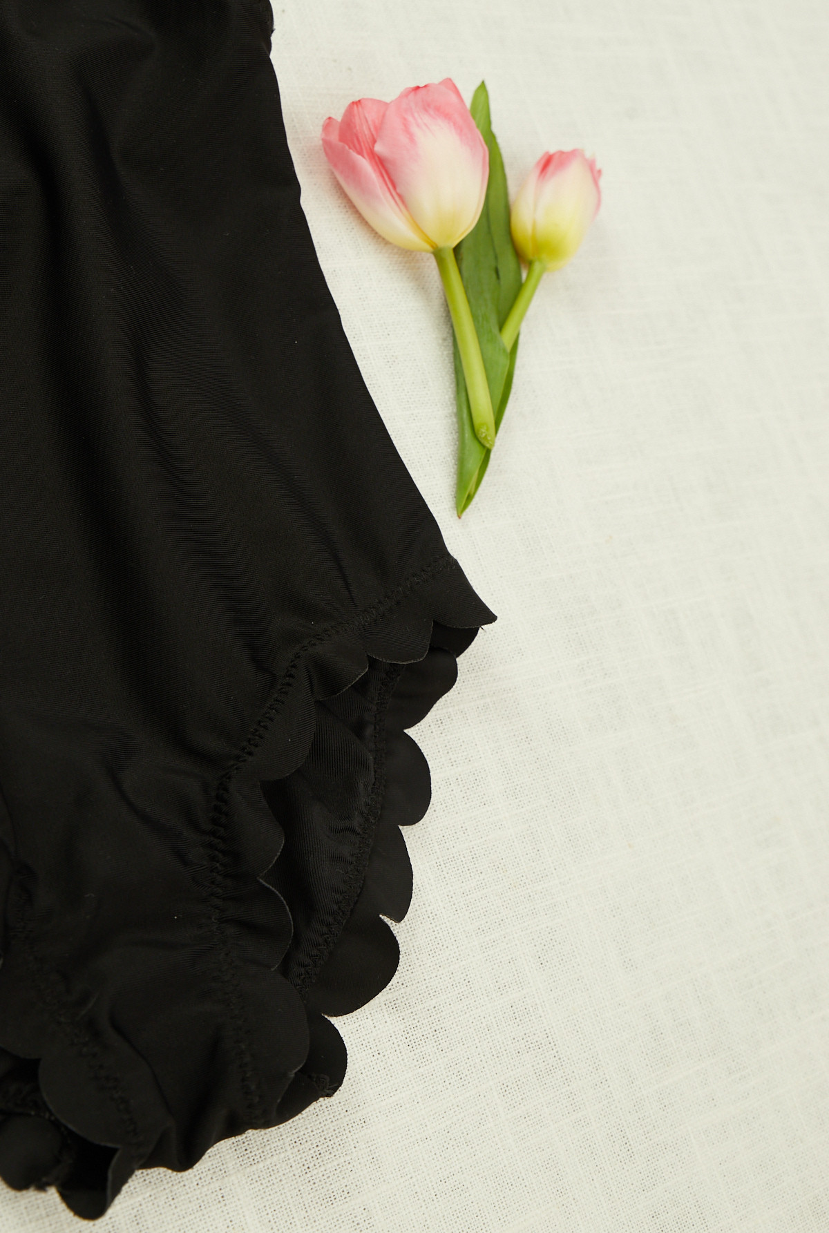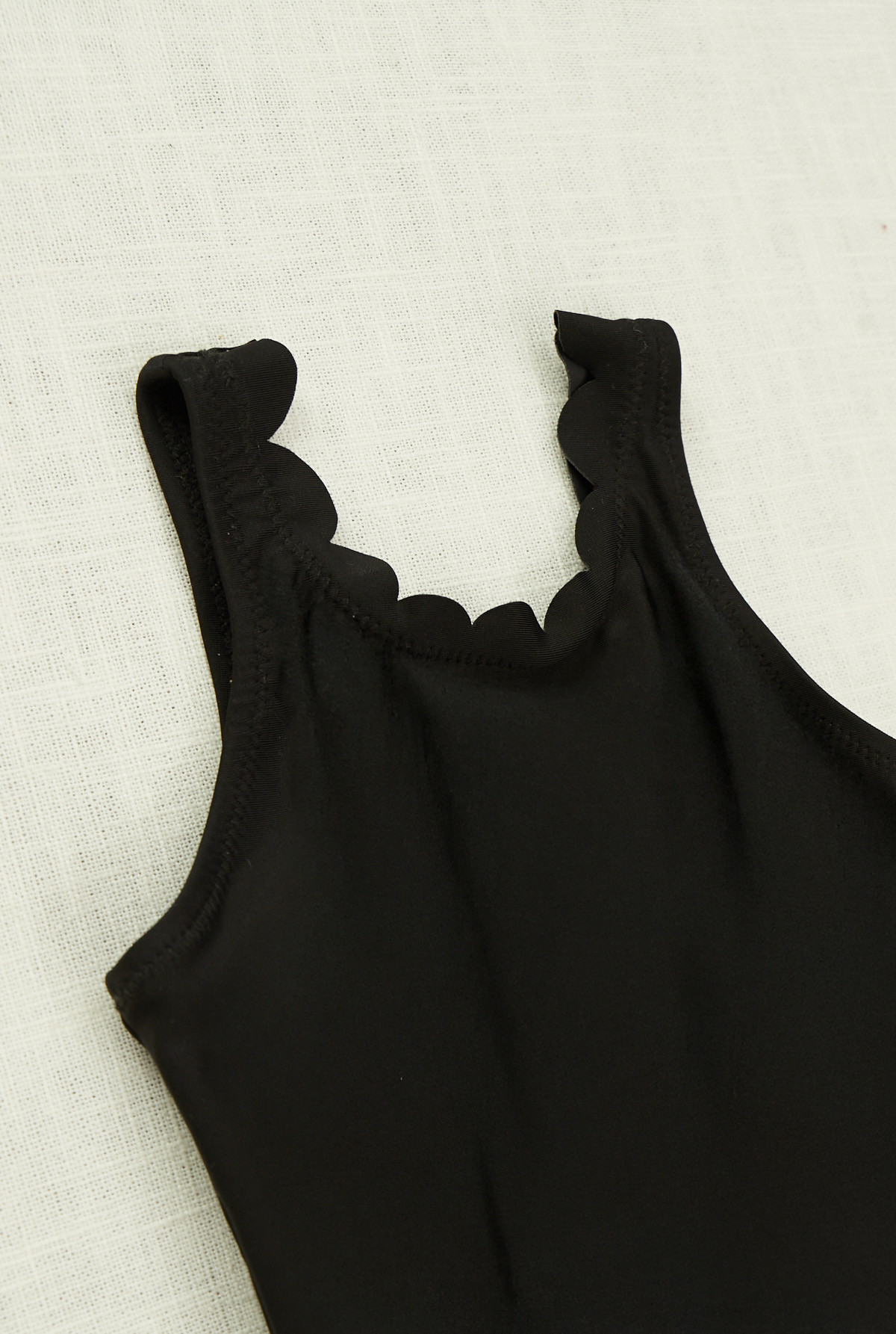 Enteriza forrada de nylon elastizado. Detalle de onditas en terminaciones.