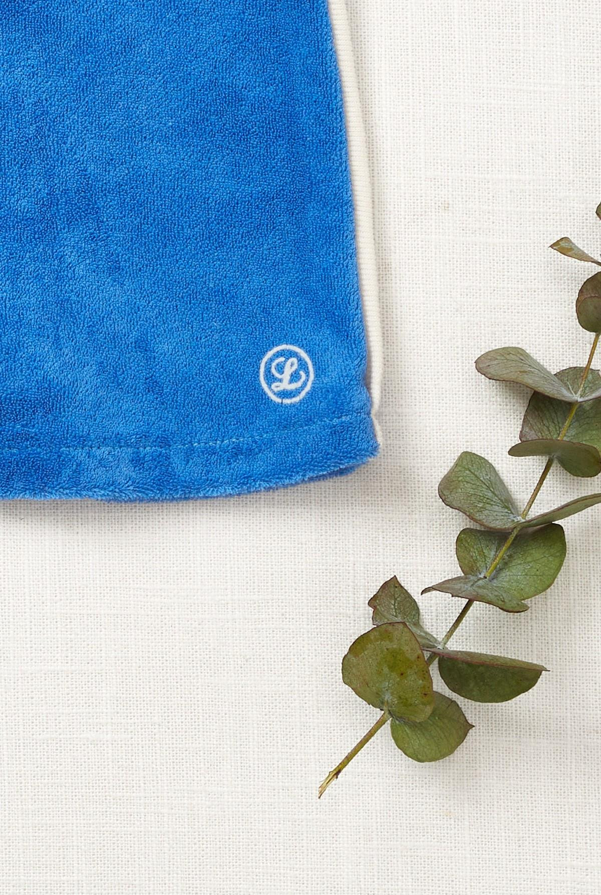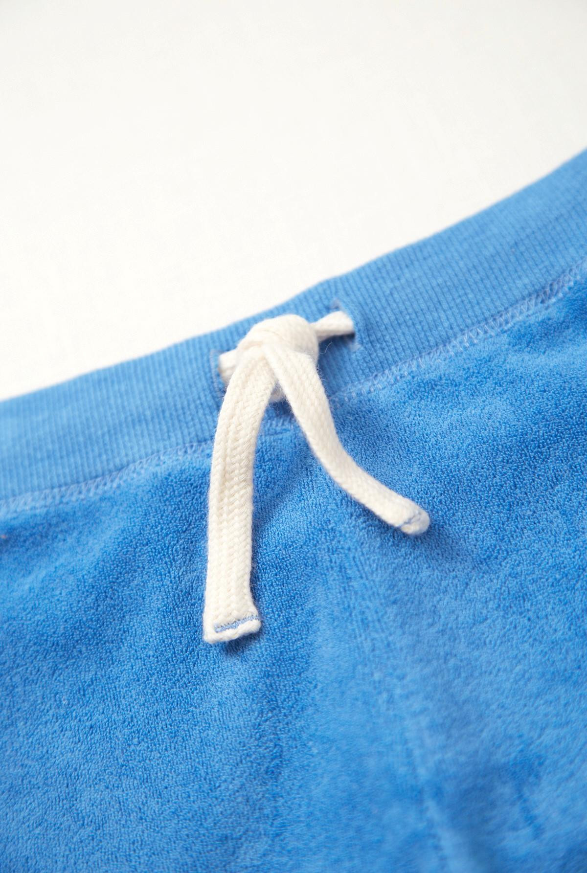 Short liso en towel con cintura elastizada y cordón ajustable. Terminaciones en rib a contratono.
