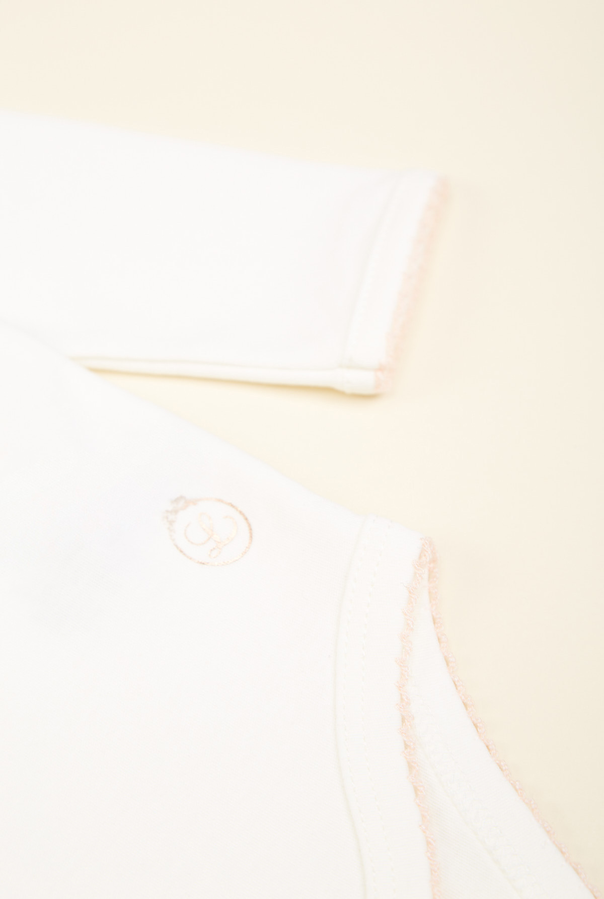 Body liso, cuello americano, manga larga, en interlock de algodon pima. Estampa carita en delantero y bordados en terminaciones de cuellos y puños. Apertura en tiro con snaps libres de plomo. Materiales suaves y confortables para la piel de tu recién nacido.