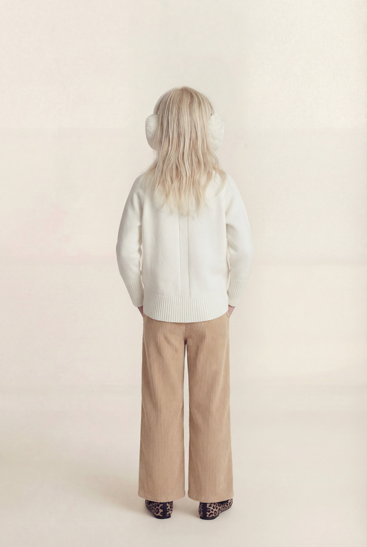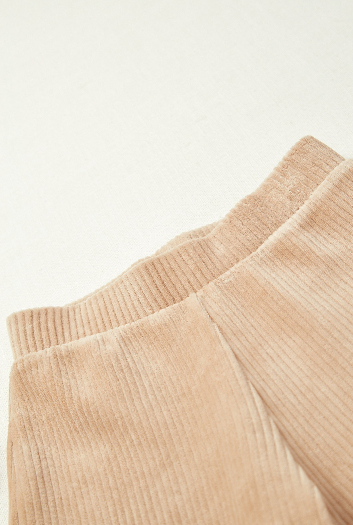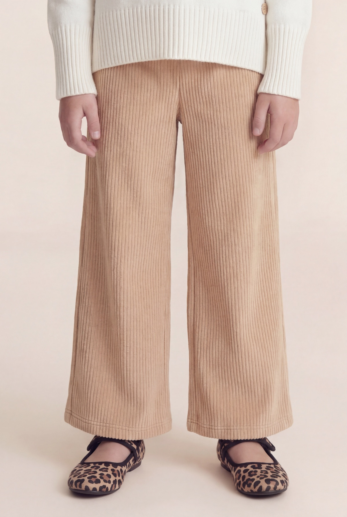 Pantalón oxford liso, cintura elastizada, en plush acanalado con elastano