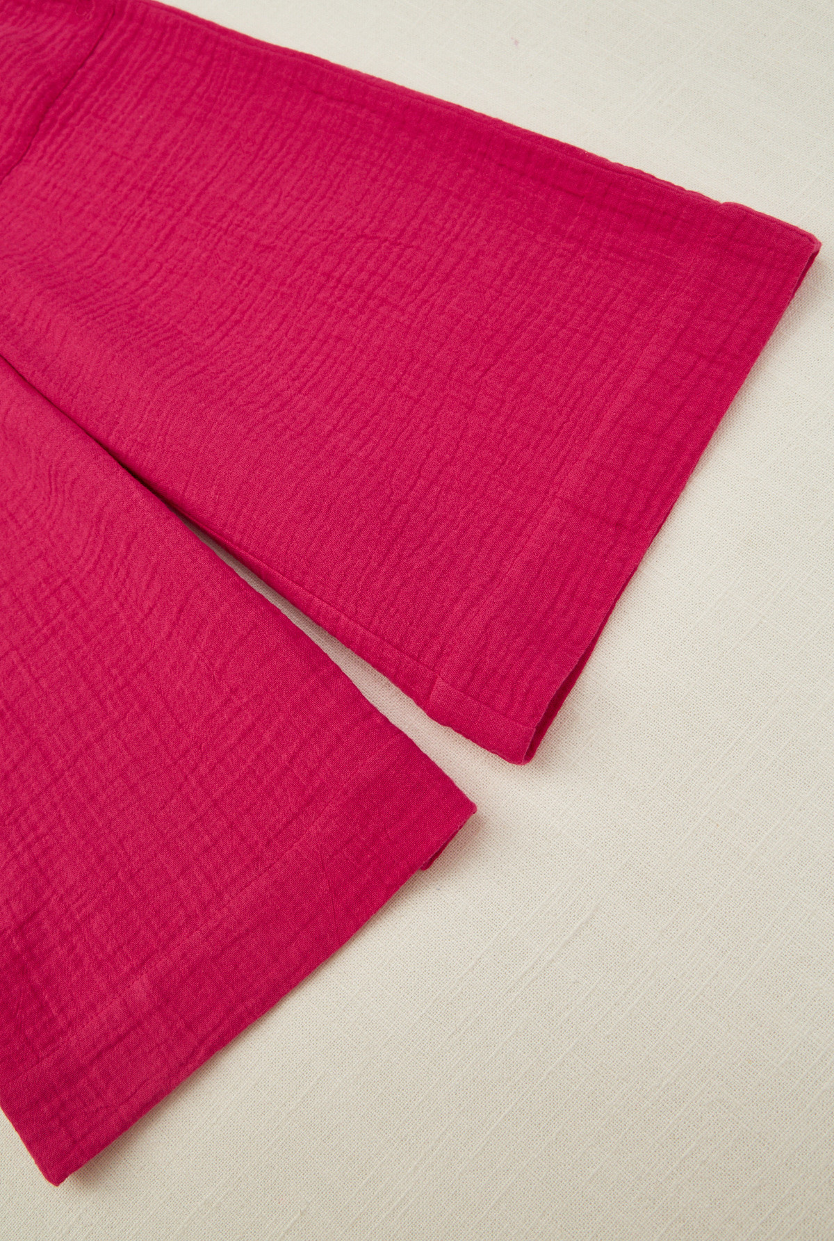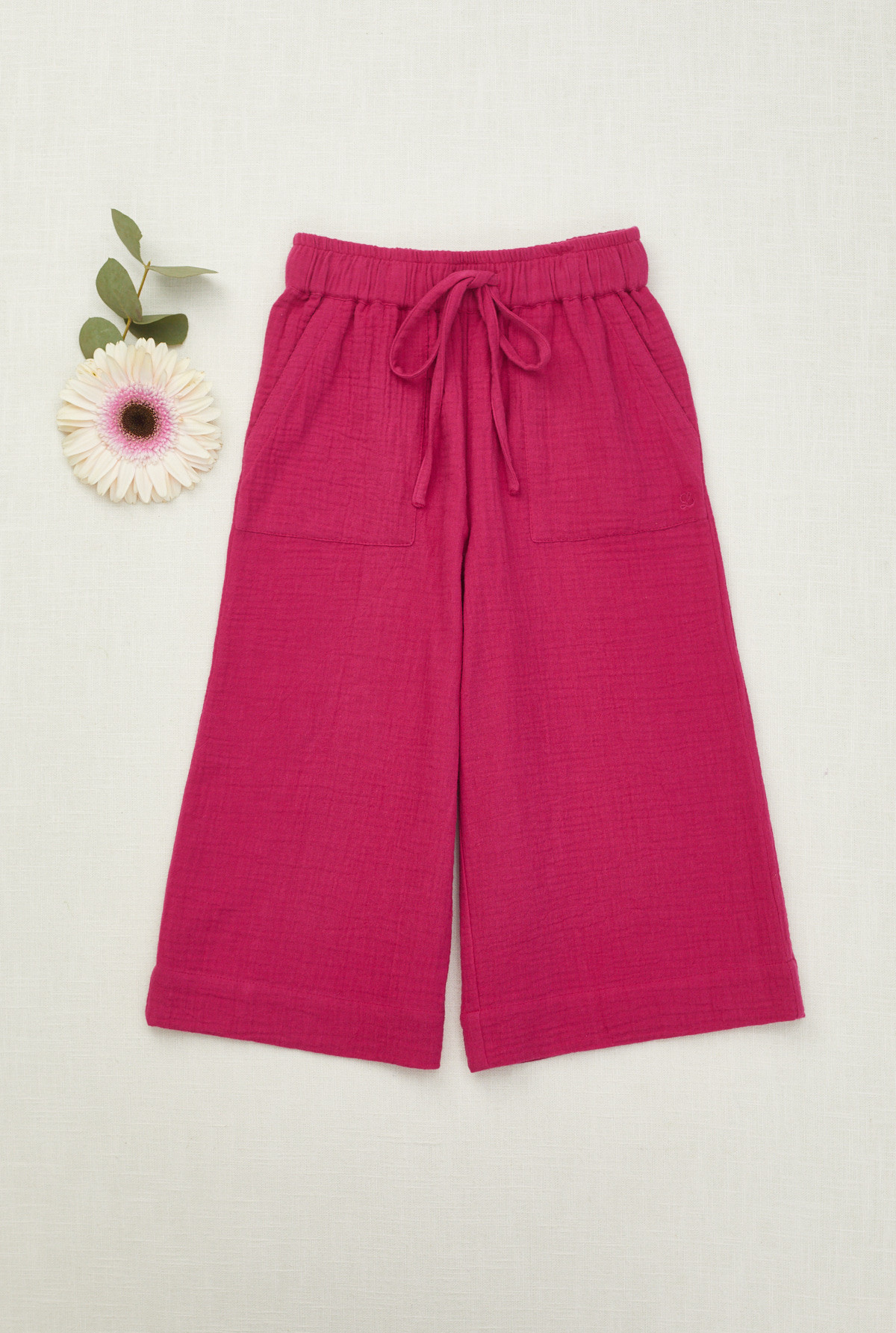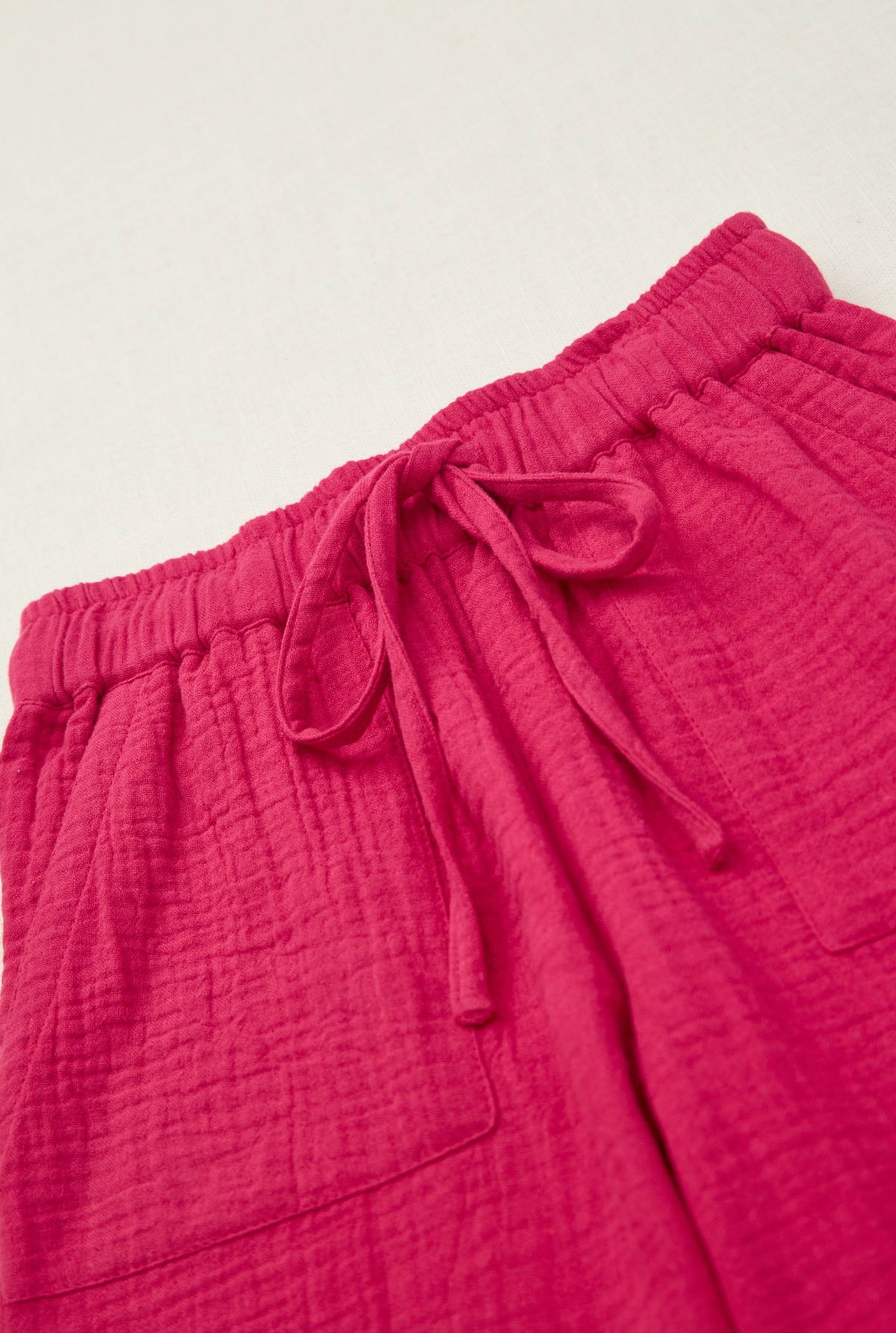 Pantalon largo, con elástico en la cintura y bolsillos. Detalle de lazo en la cintura