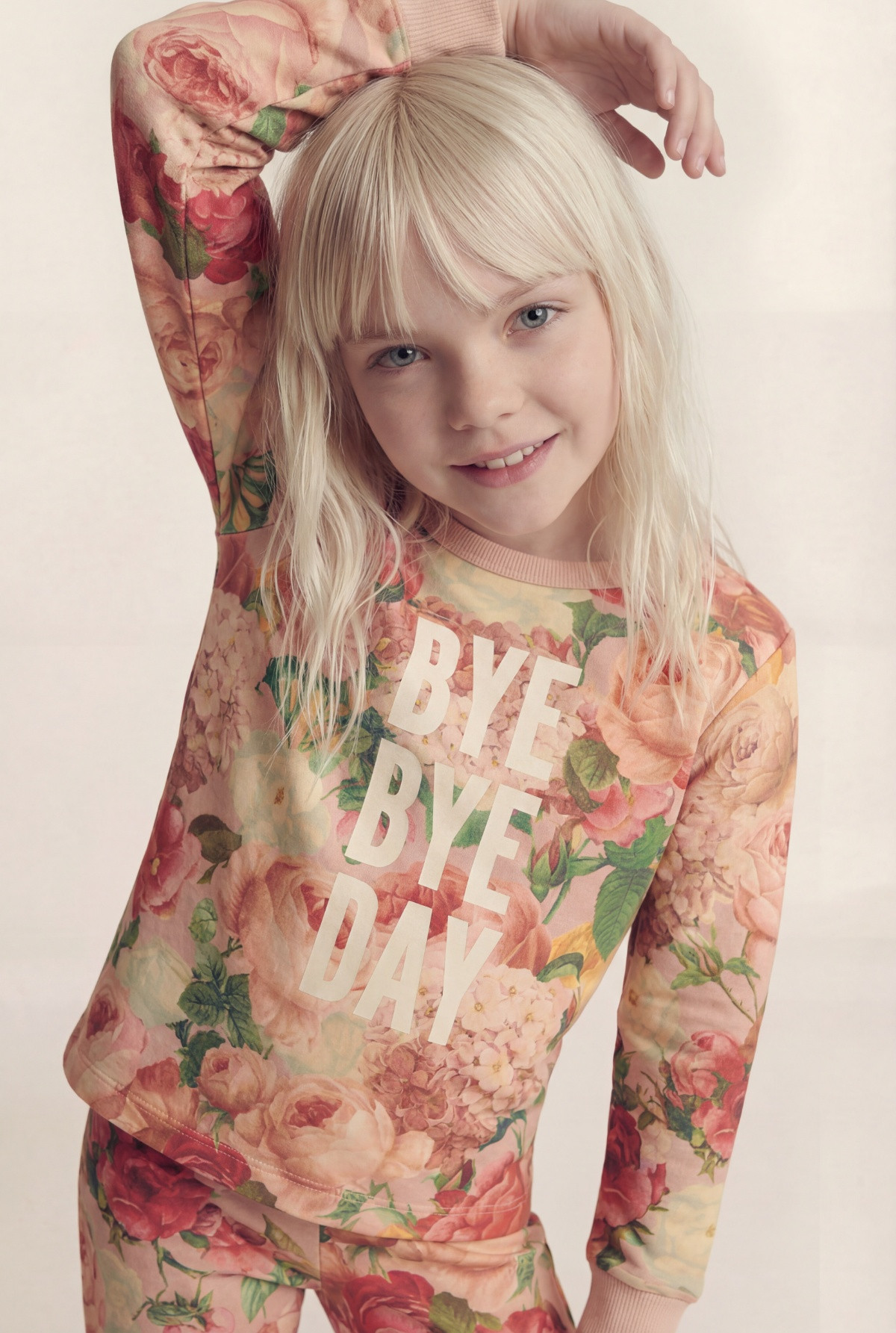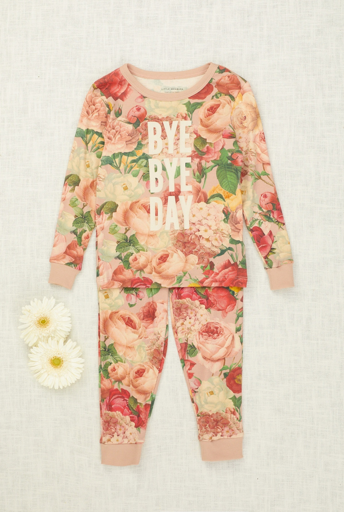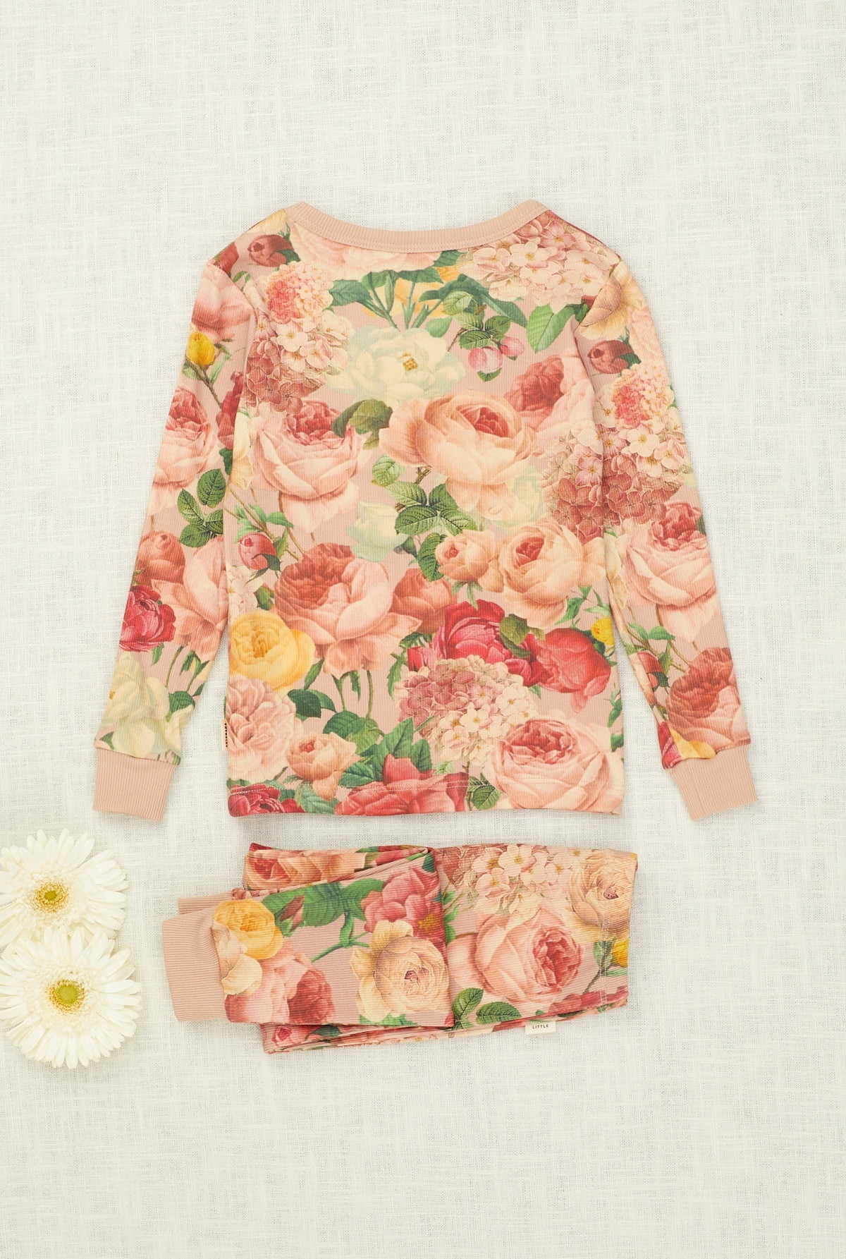 Pijama de 2 piezas en rib estampado con motivo floral, ambas prendas tienen puños.
