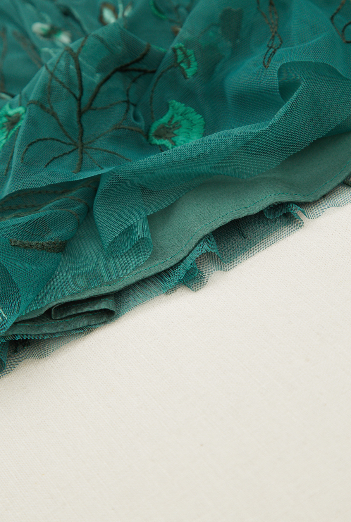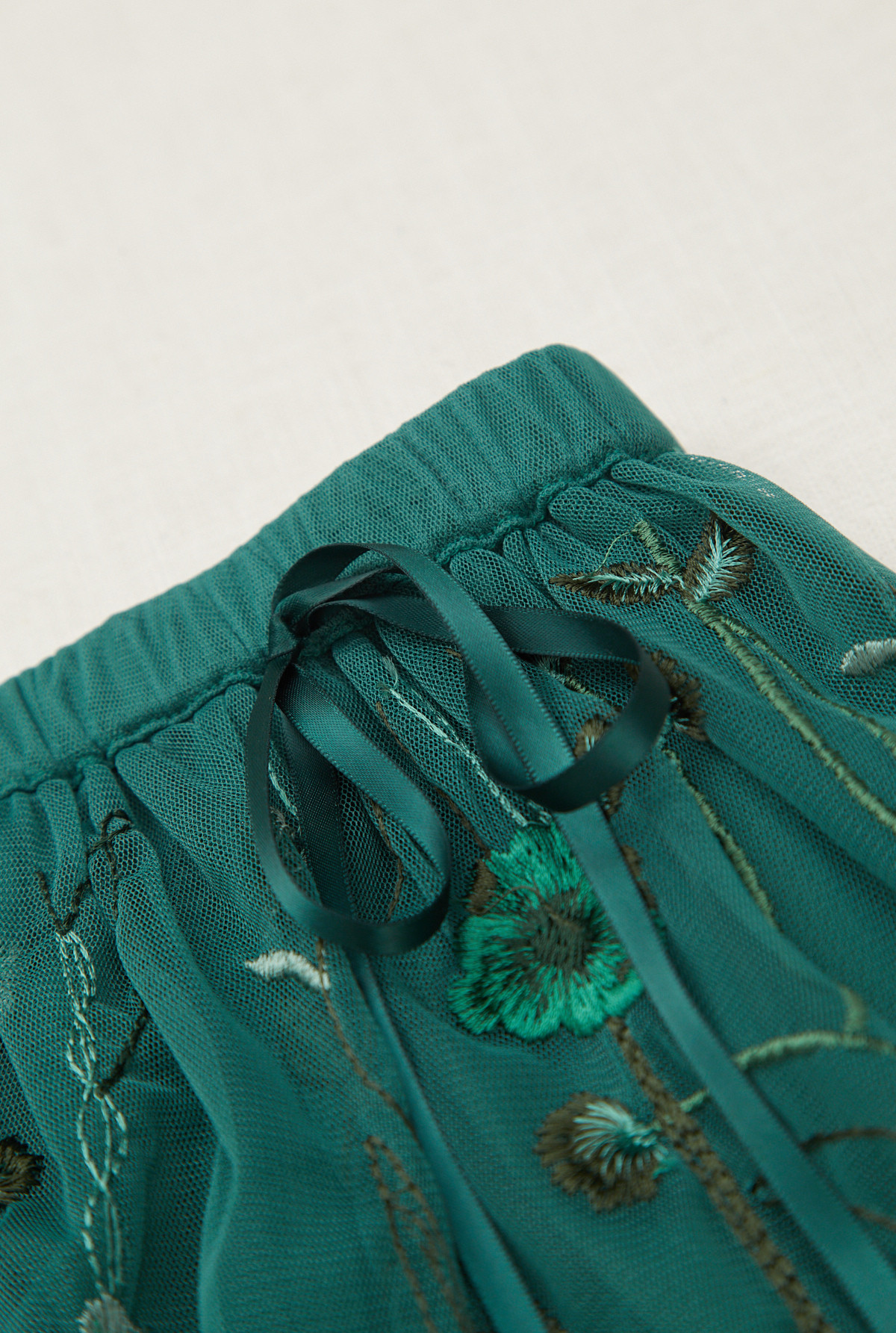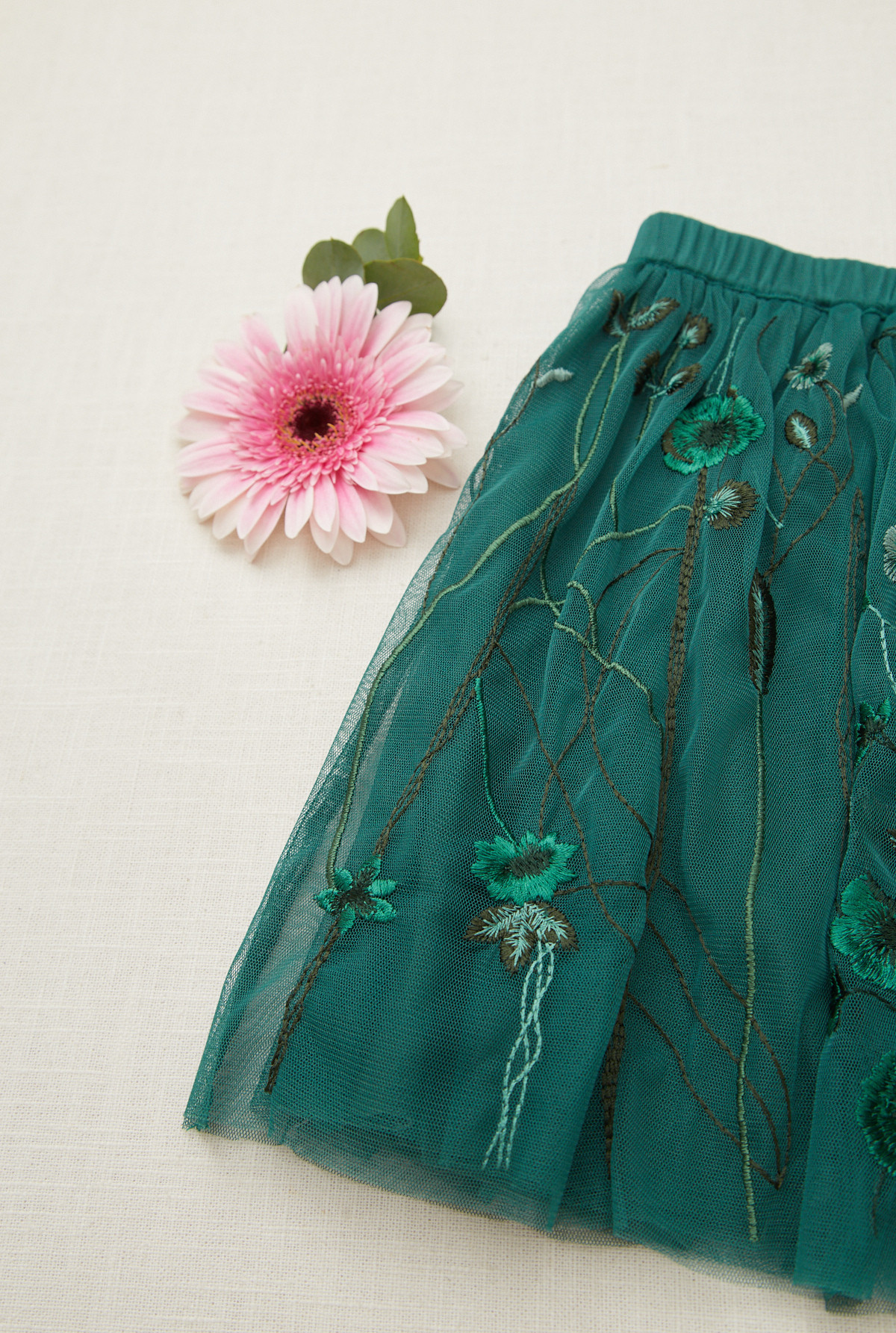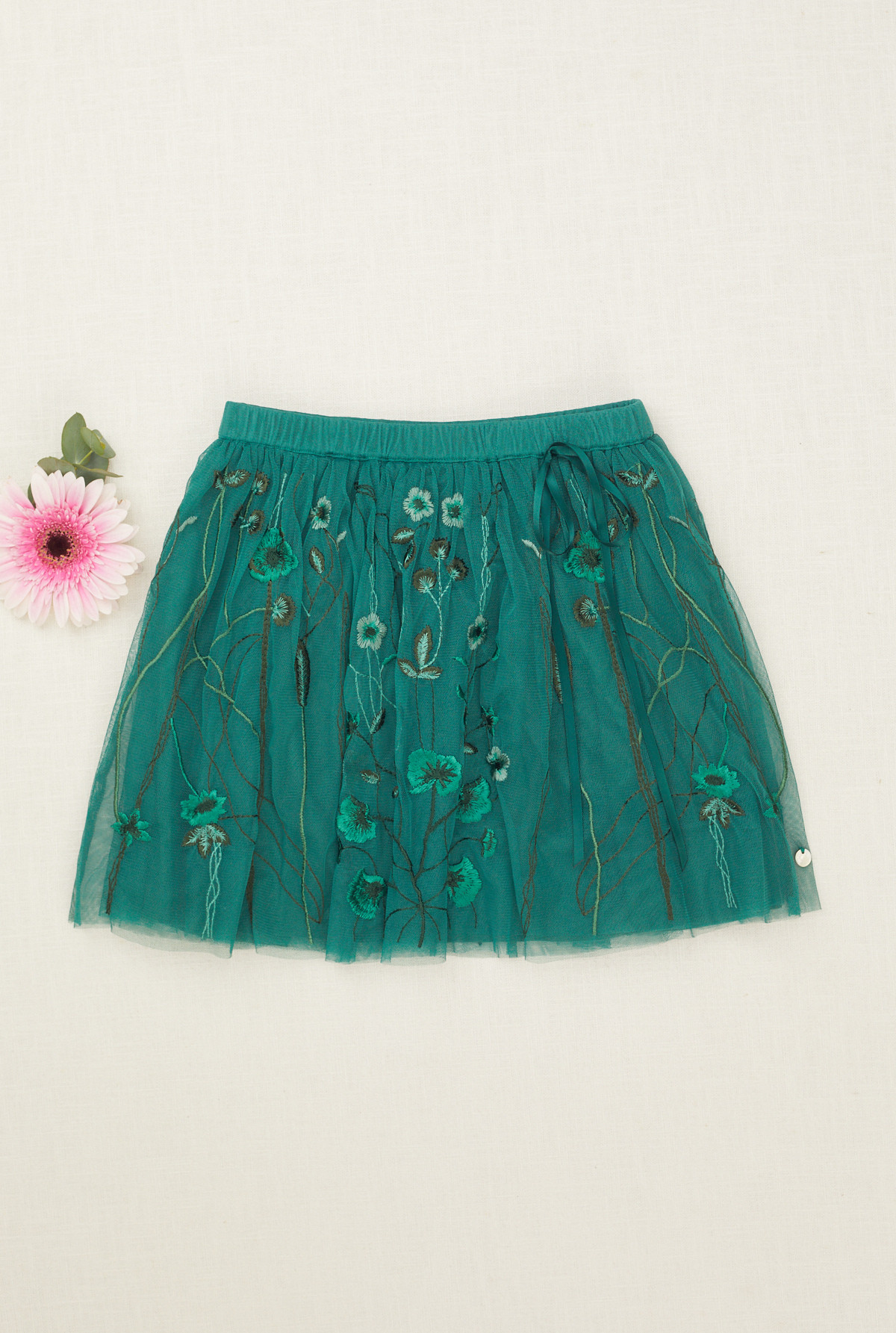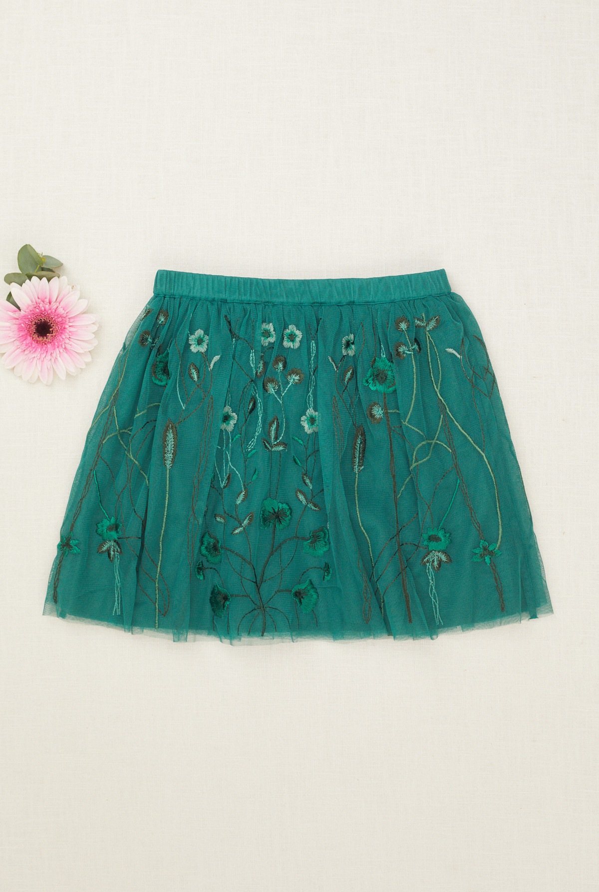 Pollera amplia con elastico en cintura para mejor calce. Capa superior bordada, forrada en su totalidad en algodón.