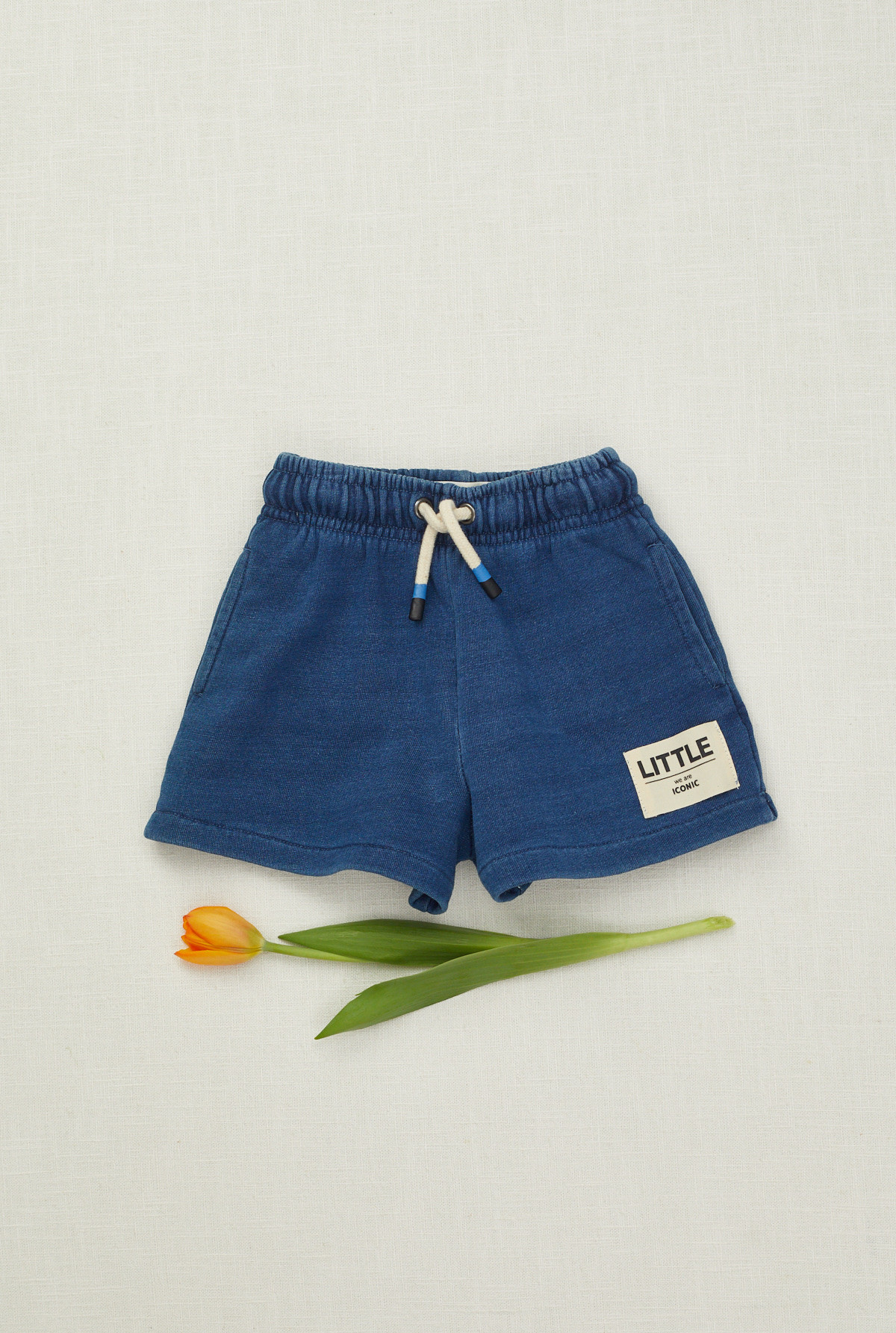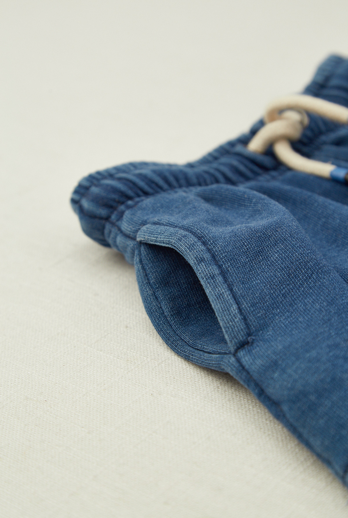 Short con bolsillos laterales. Tiene lavado indigo que le da un efecto denim especial. Contiene elastico en cintura y cordón personalizado para mejor ajuste.