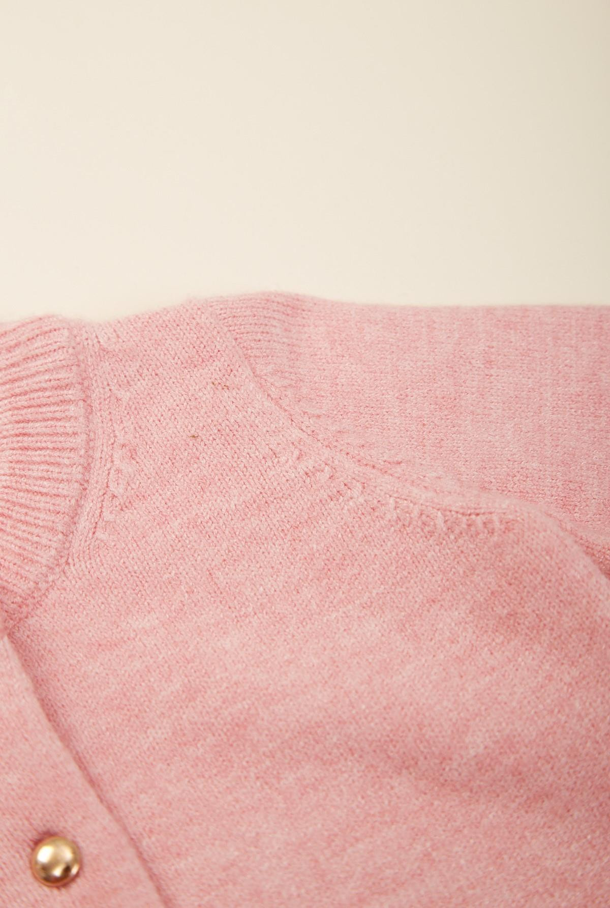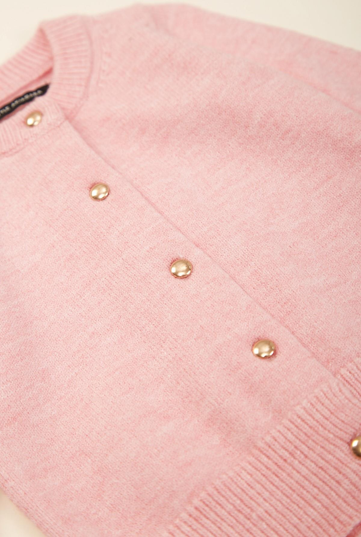 Cardigan escote redondo con manga larga, calidad suave y confortable. Cuerpo tejido en jersey, y cuello, puños y bajo tejidos en rib. Cartera con botones metálicos a contratono.